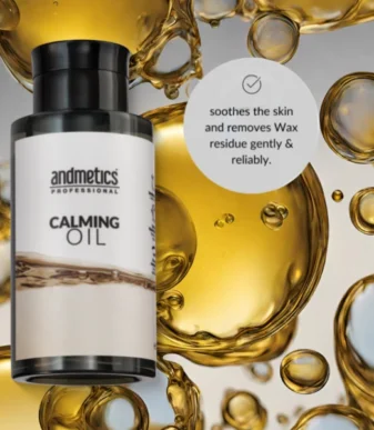 De andmetics finishing oil zorgt voor een perfecte verzorging en een perfecte afwerking van de WAXING-behandeling.