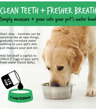 Bescherm de tanden en het tandvlees van uw huisdier met de Bugalugs Dental Care Solution; gemaakt van natuurlijke ingrediënten die de vorming van tandplak en tandsteen helpen verminderen en tegelijkertijd een frisse adem bevorderen.