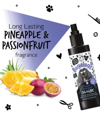 Spray en ga, met Bugalugs Ananas & Passievrucht Cologne! Verwijder snel geurtjes en laat je huisdier onweerstaanbaar ruiken.