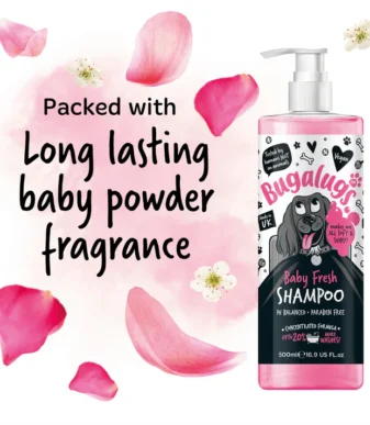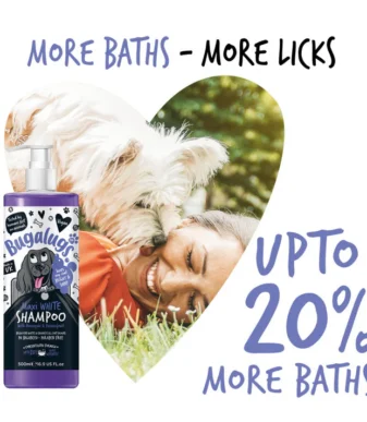 Bugalugs huisdierenshampoo zonder uitspoelen reinigt en verfrist de vacht van uw huisdier direct tussen de wasbeurten door, zonder dat water nodig is.