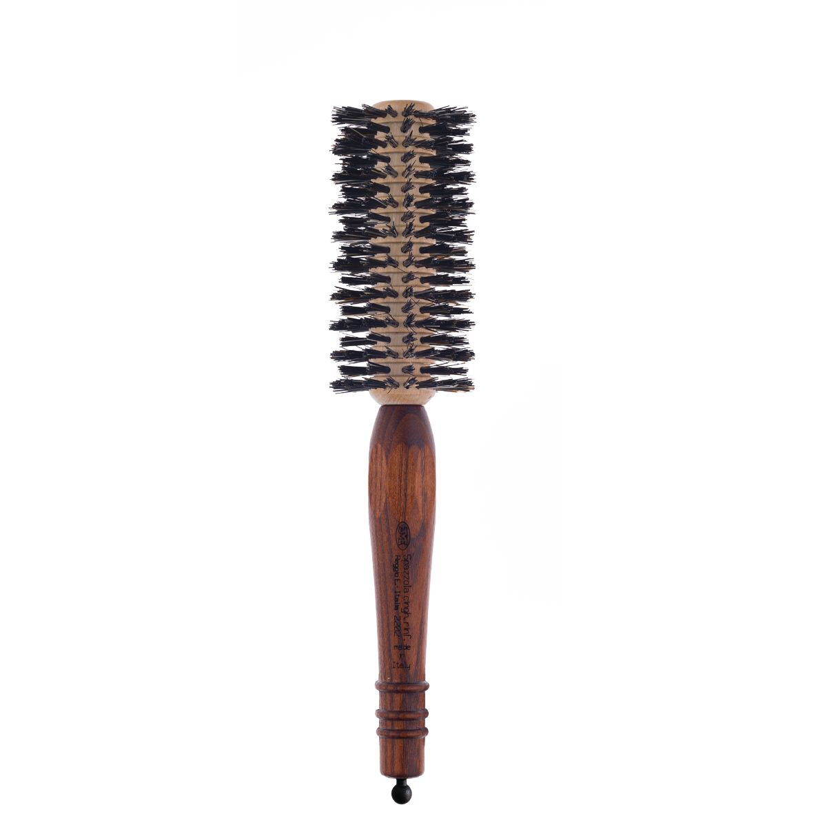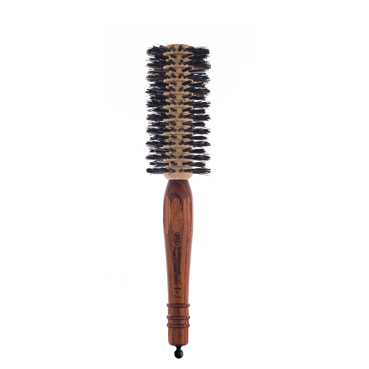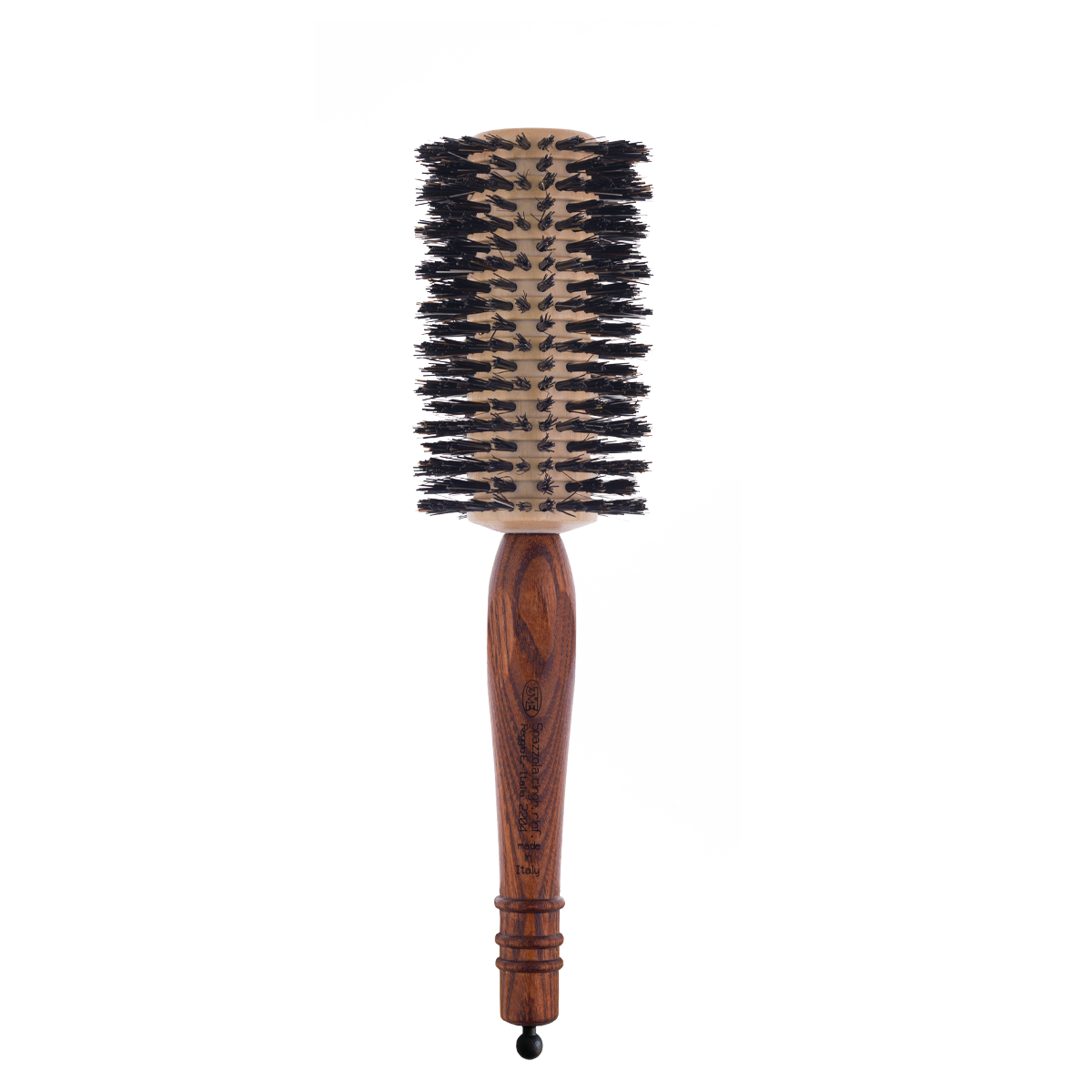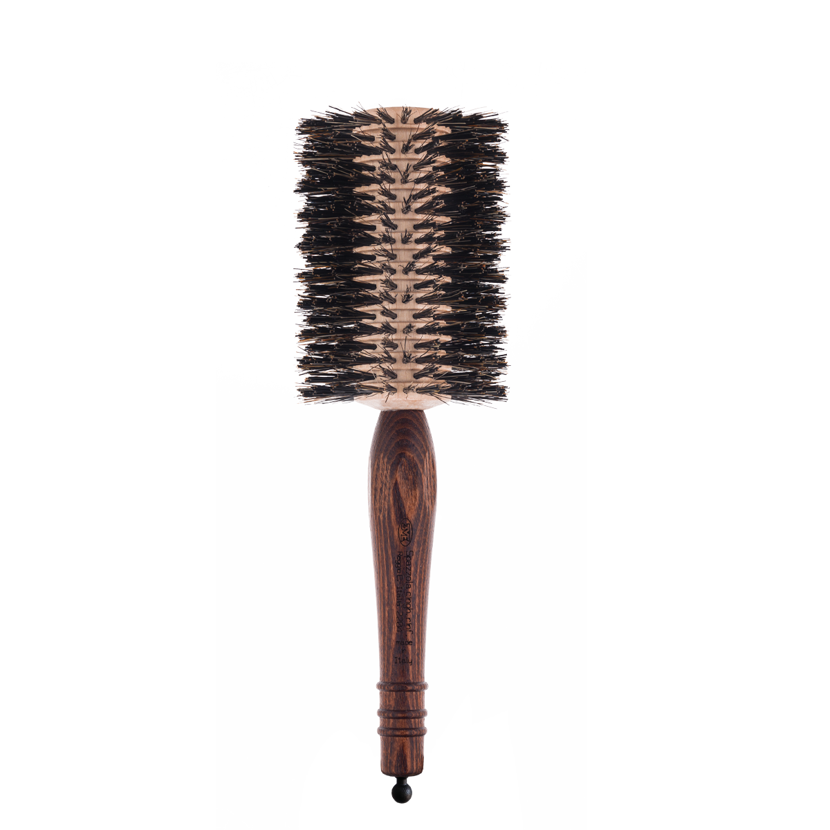 De borstel is uitgerust met versterkt everzwijnhaar op verschillende hoogtes, gecombineerd met professioneel nylon. Deze hoogwaardige combinatie omhult het haar met uiterste precisie en zorgt voor optimale grip en controle tijdens het stylen.
