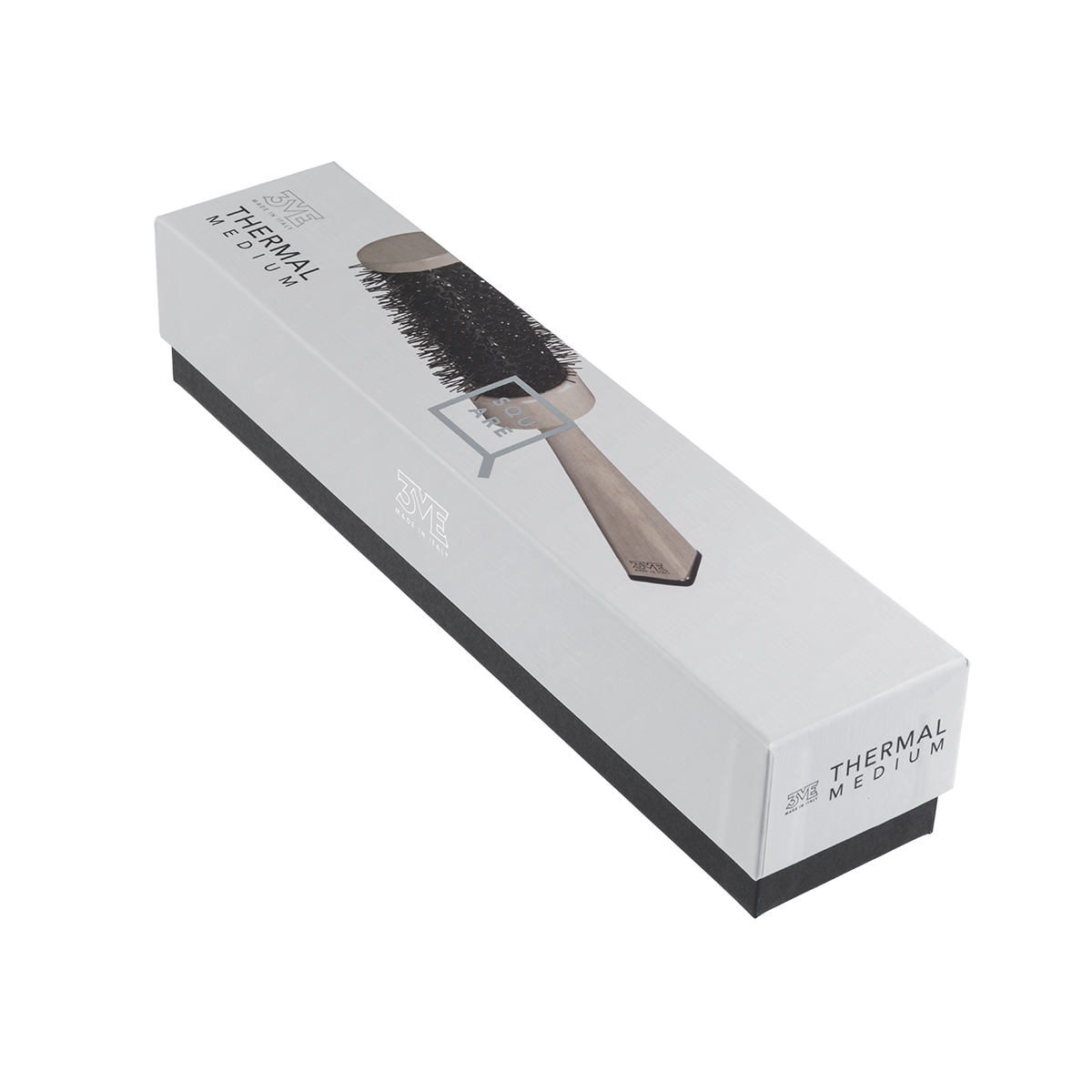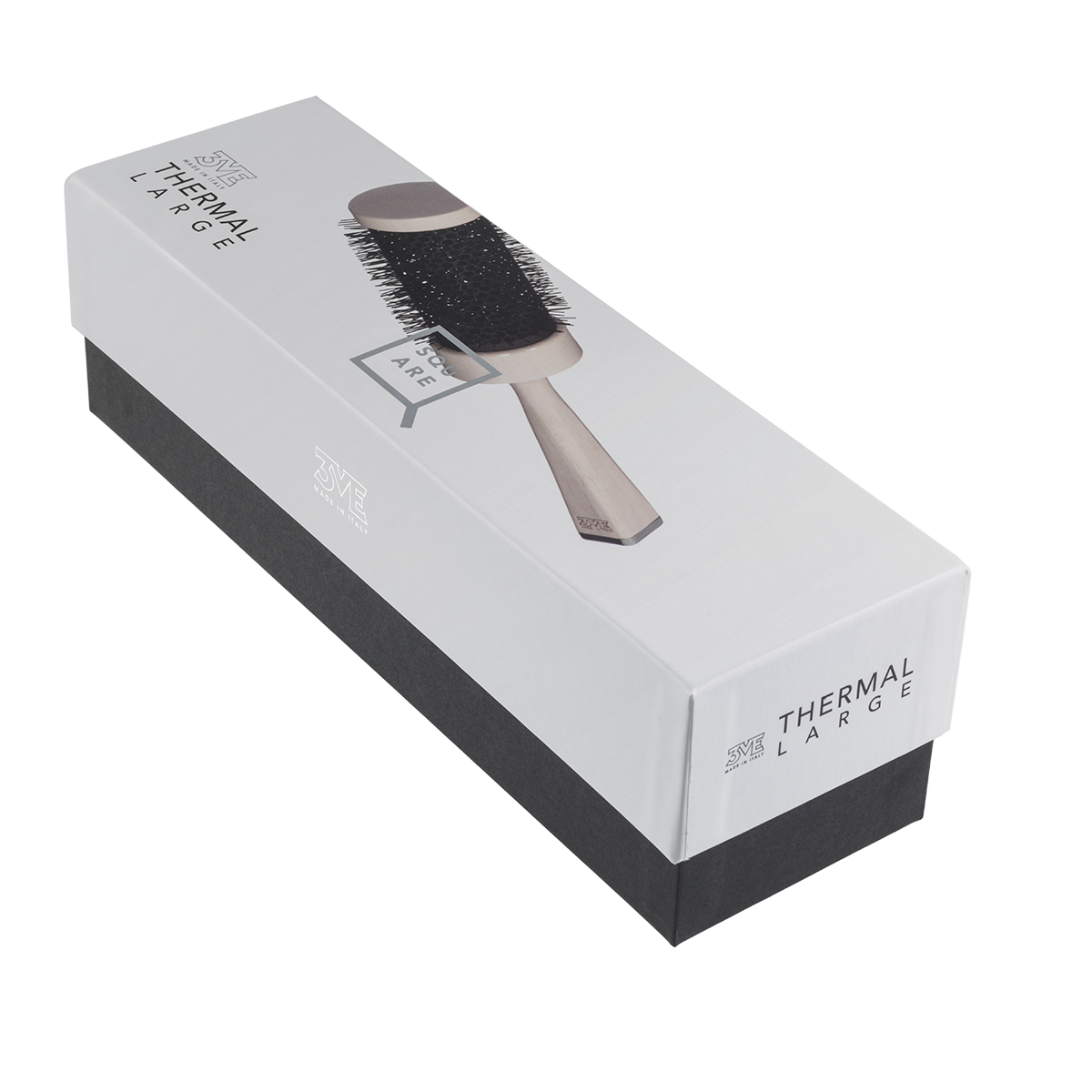 Het borstelveld bestaat uit een combinatie van everzwijnhaar en professioneel nylon. Deze mix is antistatisch en hittebestendig en helpt de haarstructuur te beschermen tijdens het stylen. Het haar krijgt optimale controle, natuurlijke glans en een verzorgde finish zonder beschadiging.