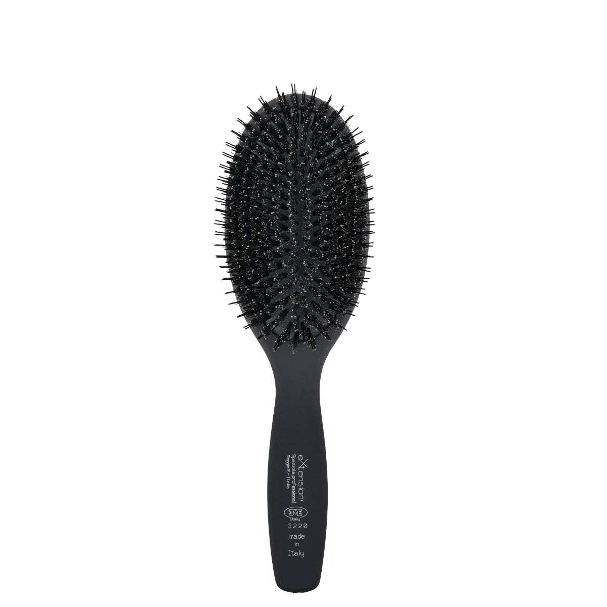 De houten handvatten zijn afgewerkt met een antistatische en antislip lak. Dit zorgt voor optimale grip en maximale controle, zelfs tijdens intensief gebruik in de salon. De borstel ligt prettig in de hand en biedt een zachte, comfortabele aanraking.