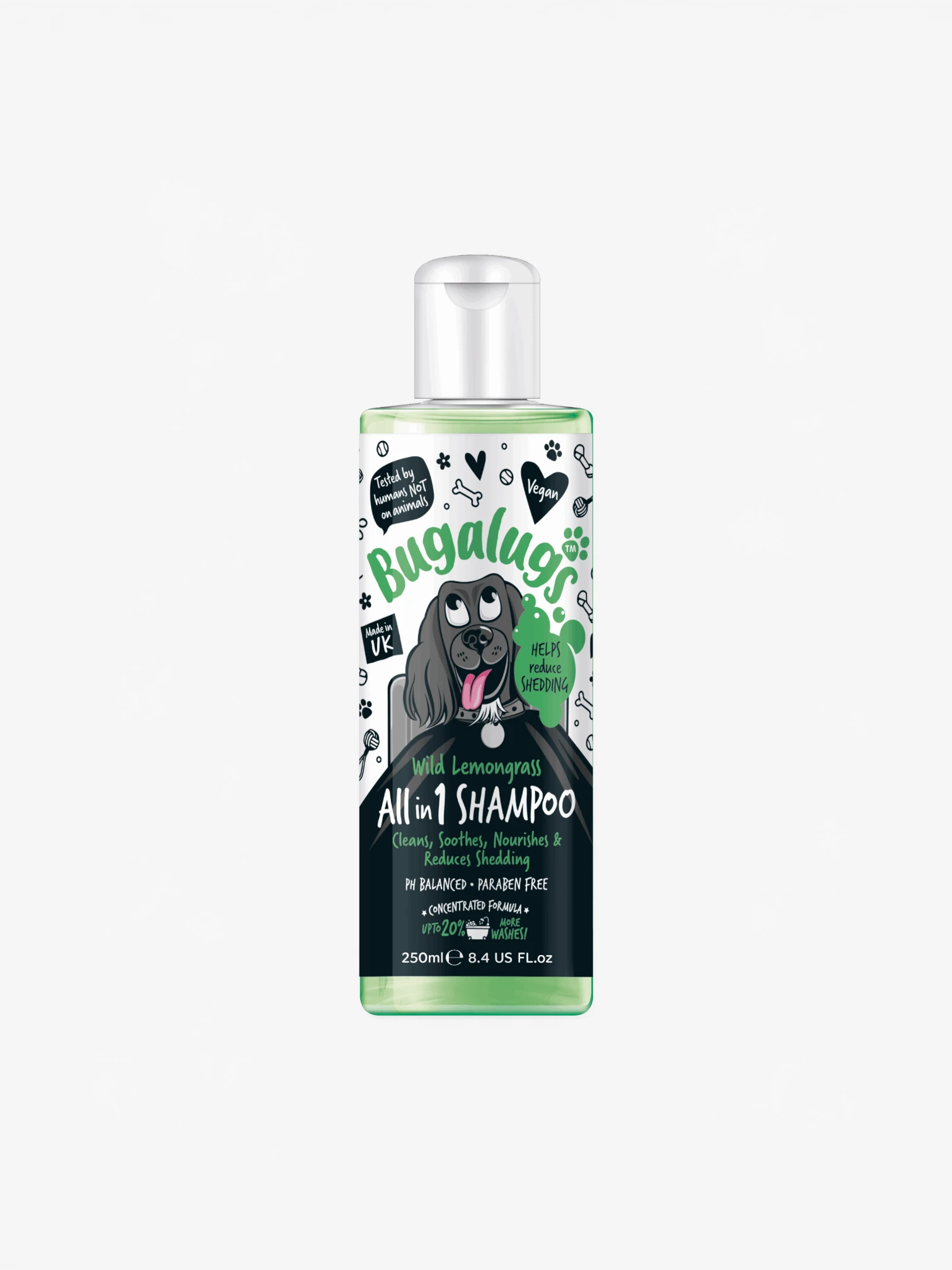 Bugalugs All In 1 Dog Shampoo Shed Control is een verzorgende shampoo die helpt verharing te verminderen en tegelijkertijd de vacht reinigt en voedt. De formule zorgt voor een gezonde, zachte en glanzende vacht met een frisse geur van wild lemongrass.