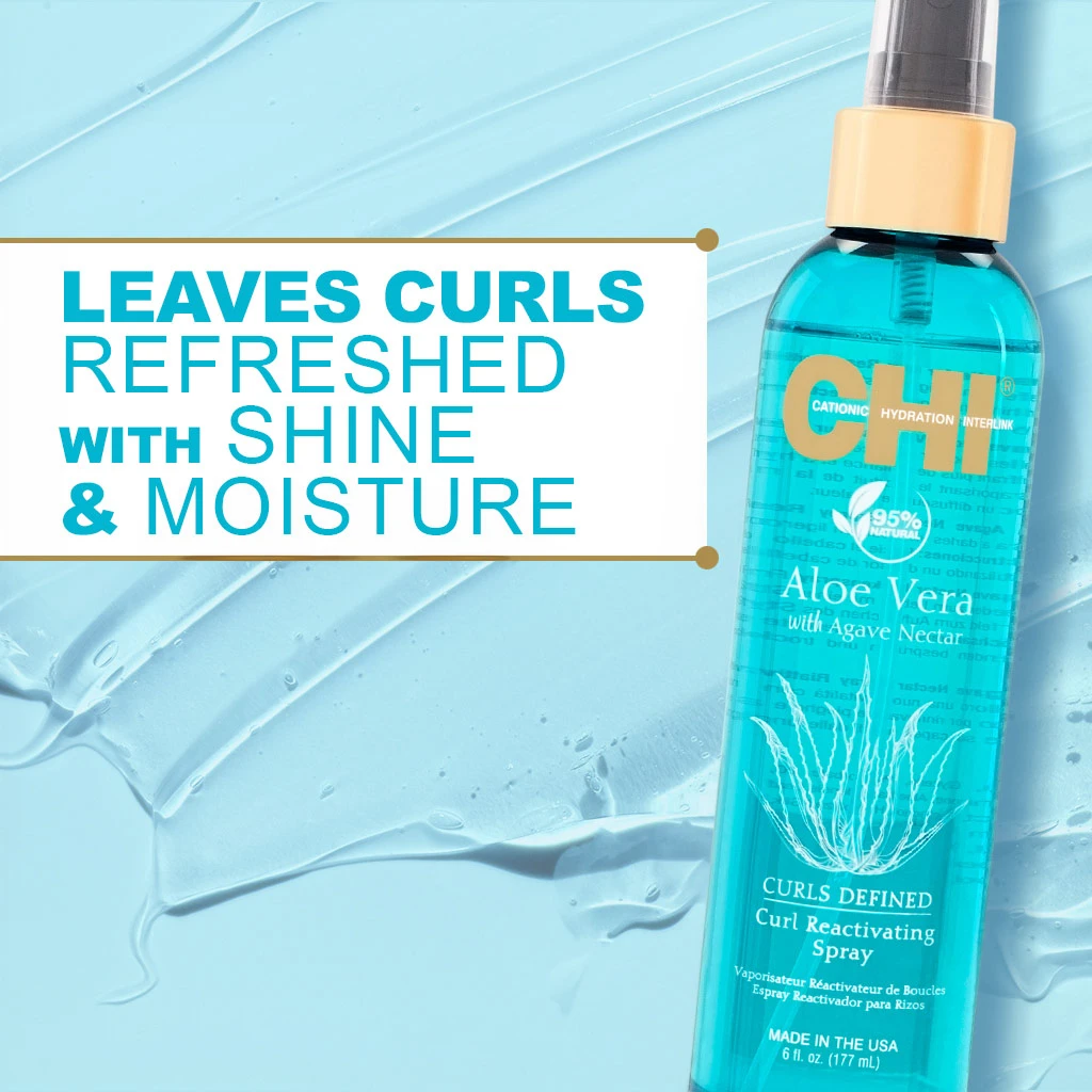 De CHI Aloe Vera with Agave Nectar Curl Reactivating Spray verfrist en heractiveert krullen met een lichte, hydraterende nevel. Deze spray geeft het haar direct meer veerkracht, glans en definitie, zonder residu achter te laten.