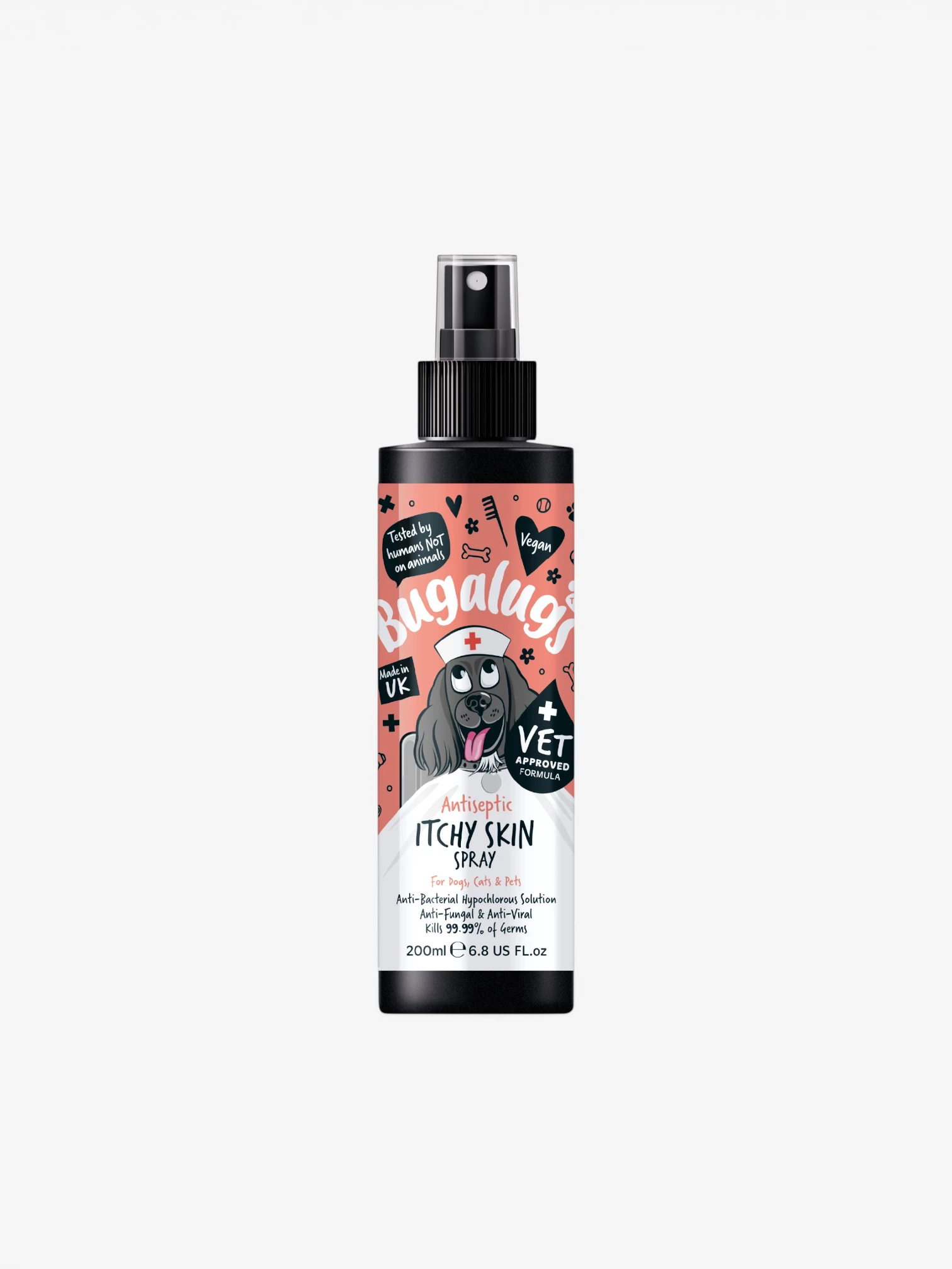Bugalugs Antiseptic Itchy Skin Relief Spray is een geavanceerde formule op basis van hypochloorzuur, een stof die van nature door het immuunsysteem wordt geproduceerd om infecties te bestrijden.