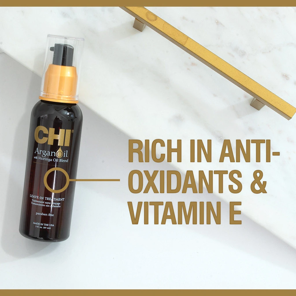 De CHI Argan Oil is een lichtgewicht, snel absorberende haarolie die het haar hydrateert, herstelt en beschermt tegen veroudering en beschadiging. Deze voedende olie geeft het haar een zijdezachte finish, intense glans en een gezonde uitstraling zonder het te verzwaren.