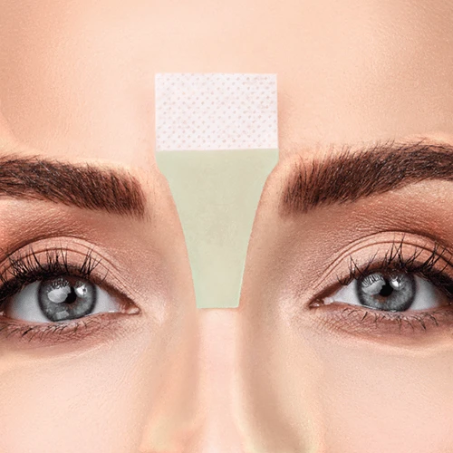 Plaats de strip op de gewenste zone rondom de wenkbrauw en druk goed aan.