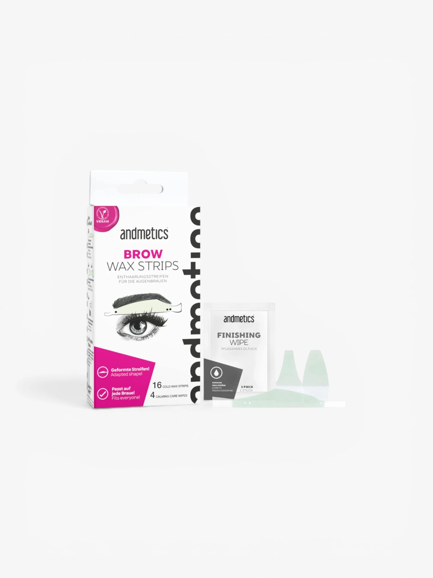 De unieke Andmetics ontharingsstroken maken elke wenkbrauw in slechts 2 minuten perfect Buitengewoon effectief: de haren worden met wortel verwijderd en groeien pas 4 weken later zijdezacht terug.