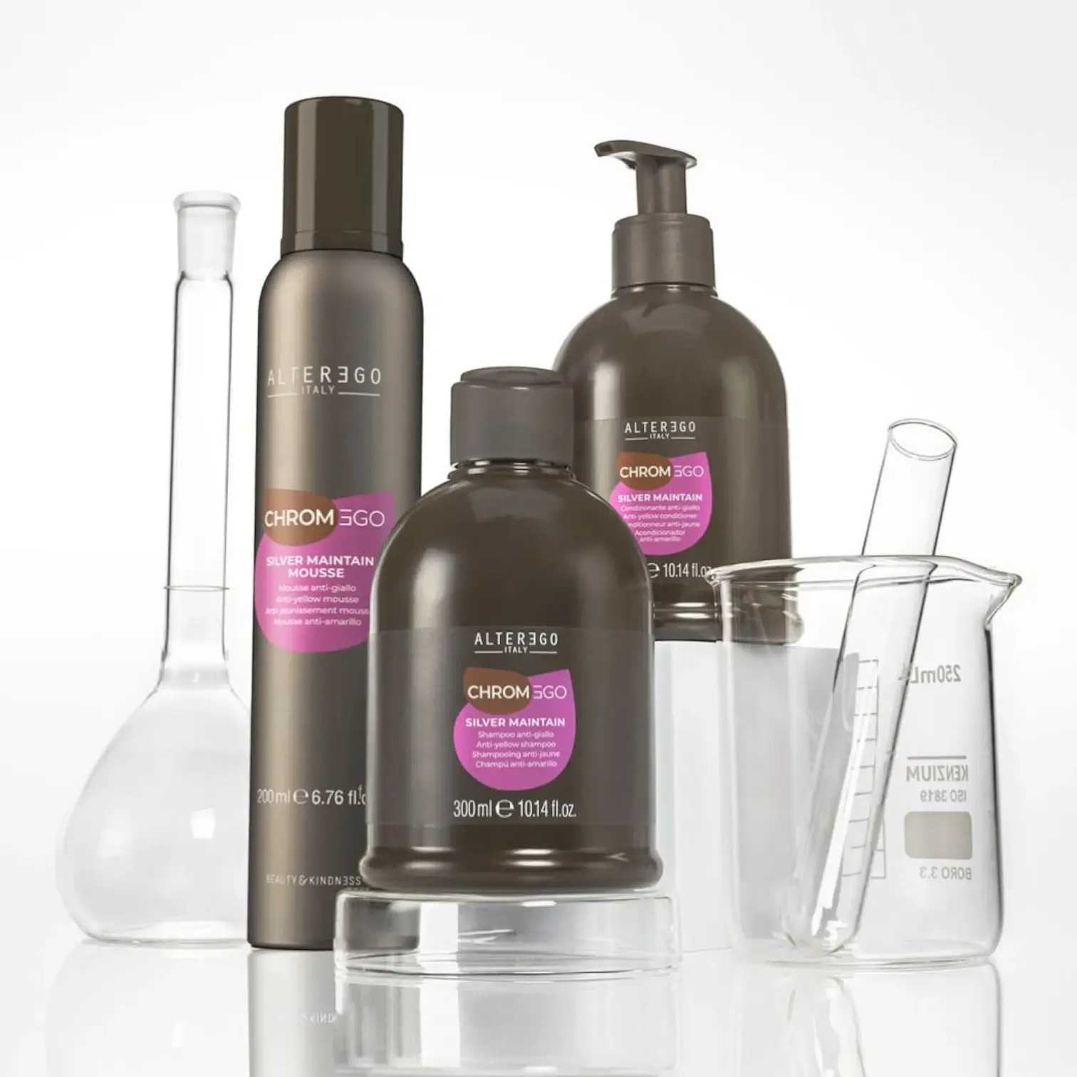 Alterego Chromego Silver Maintain Shampoo is een reinigende shampoo speciaal ontwikkeld voor blond en grijs haar.