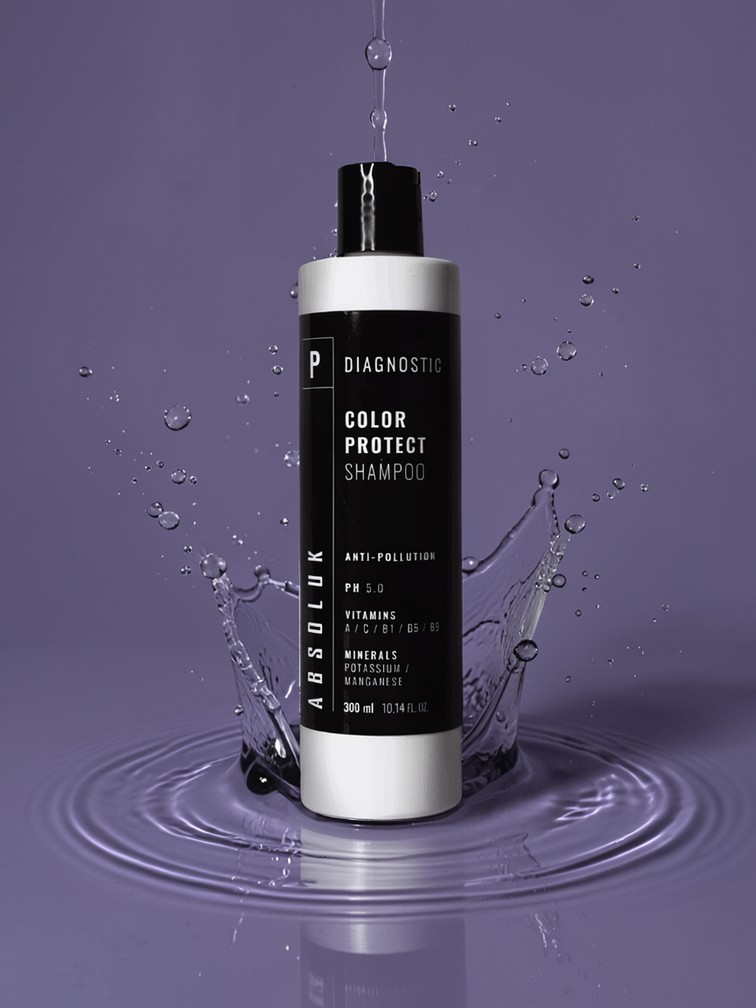 Absoluk Diagnostic Color Protect Shampoo is ontwikkeld als was en behandelritueel voor gekleurd haar, vanaf de eerste wasbeurt na het kleuren. De zure pH van 5,0 helpt de kleur langer te behouden zonder verlies van intensiteit en glans.