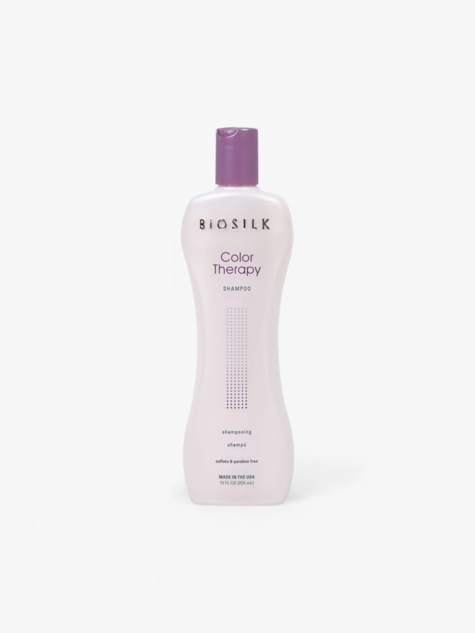 Biosilk Color Therapy Shampoo reinigt het haar en de hoofdhuid op milde wijze terwijl het de haarkleur beschermt. Zijdeproteïnen dringen door in het haar om het te versterken en te verzorgen.