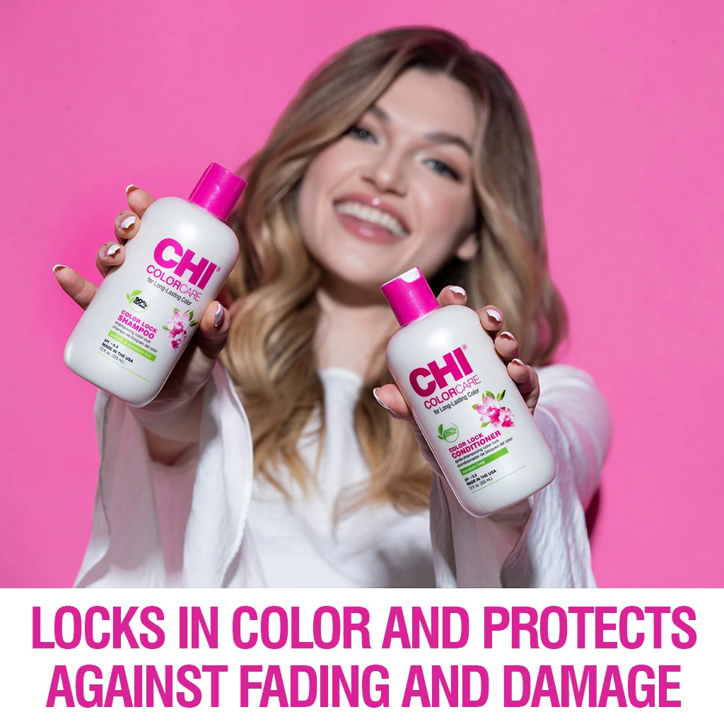 Breng aan op nat haar en masseer zachtjes in op de hoofdhuid en lengtes. Laat licht schuimen en spoel grondig uit. Herhaal indien gewenst en combineer met de CHI ColorCare Color Lock Conditioner voor optimaal kleurbehoud.