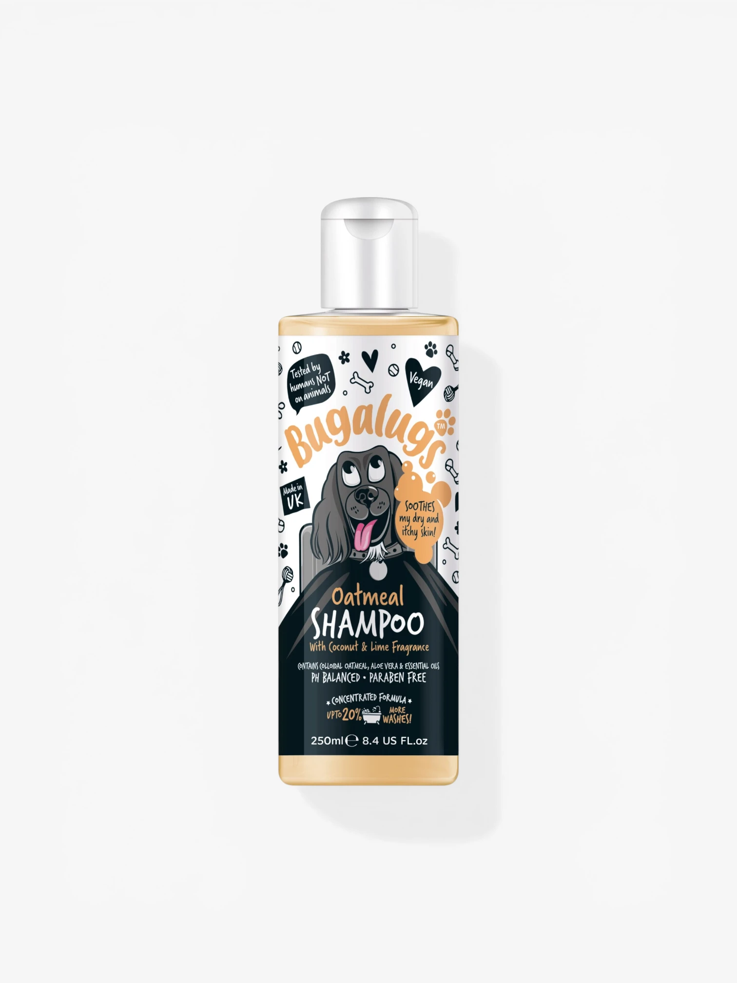 Bugalugs Dog Shampoo Oatmeal Aloe is een milde, verzorgende shampoo speciaal ontwikkeld voor honden met een gevoelige, droge of jeukende huid.
