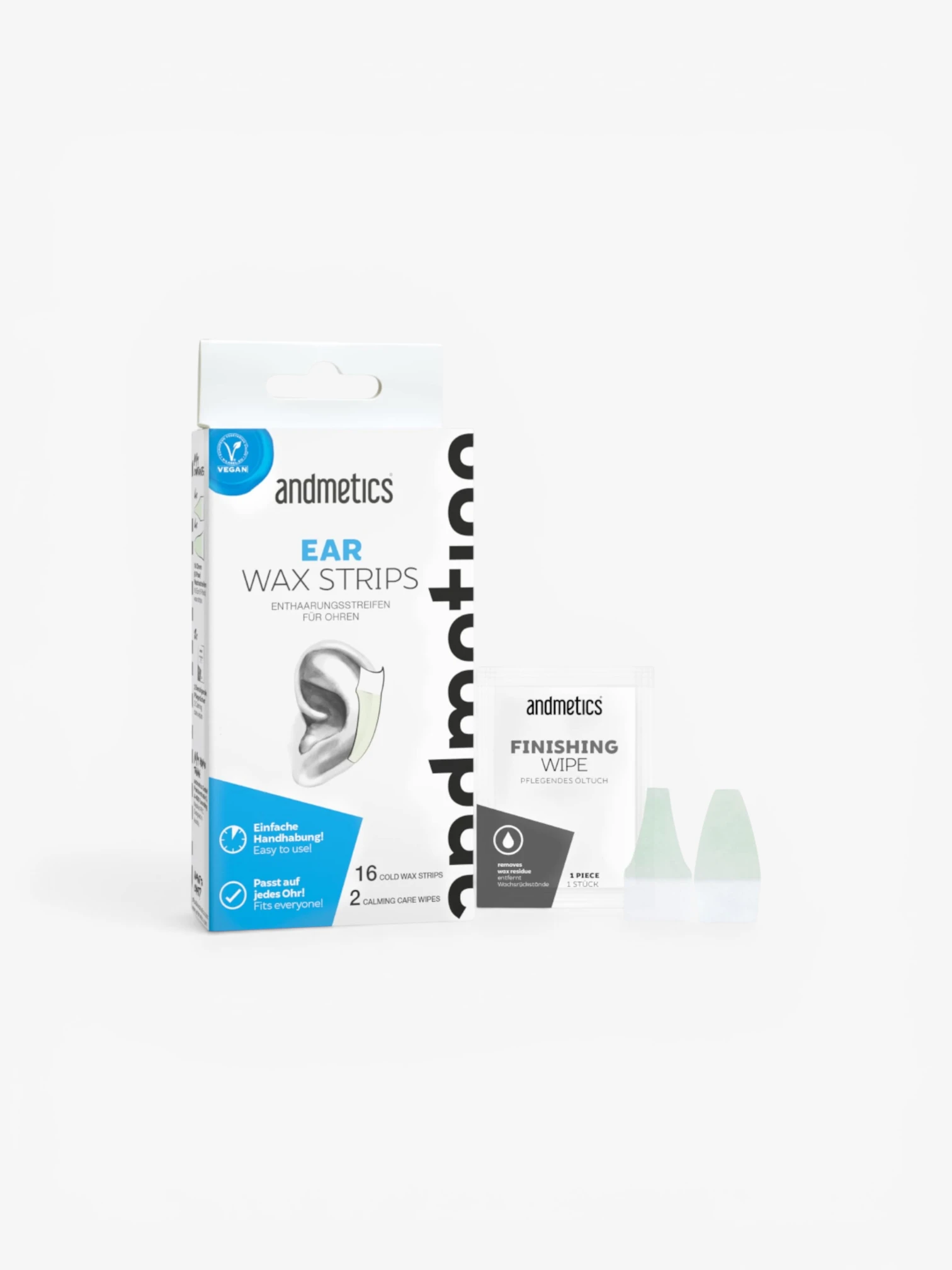 Andmetics Ear Wax Strips Men zijn speciaal ontworpen ontharingsstrips voor het snel en nauwkeurig verwijderen van ongewenste haartjes in en rondom de oren.