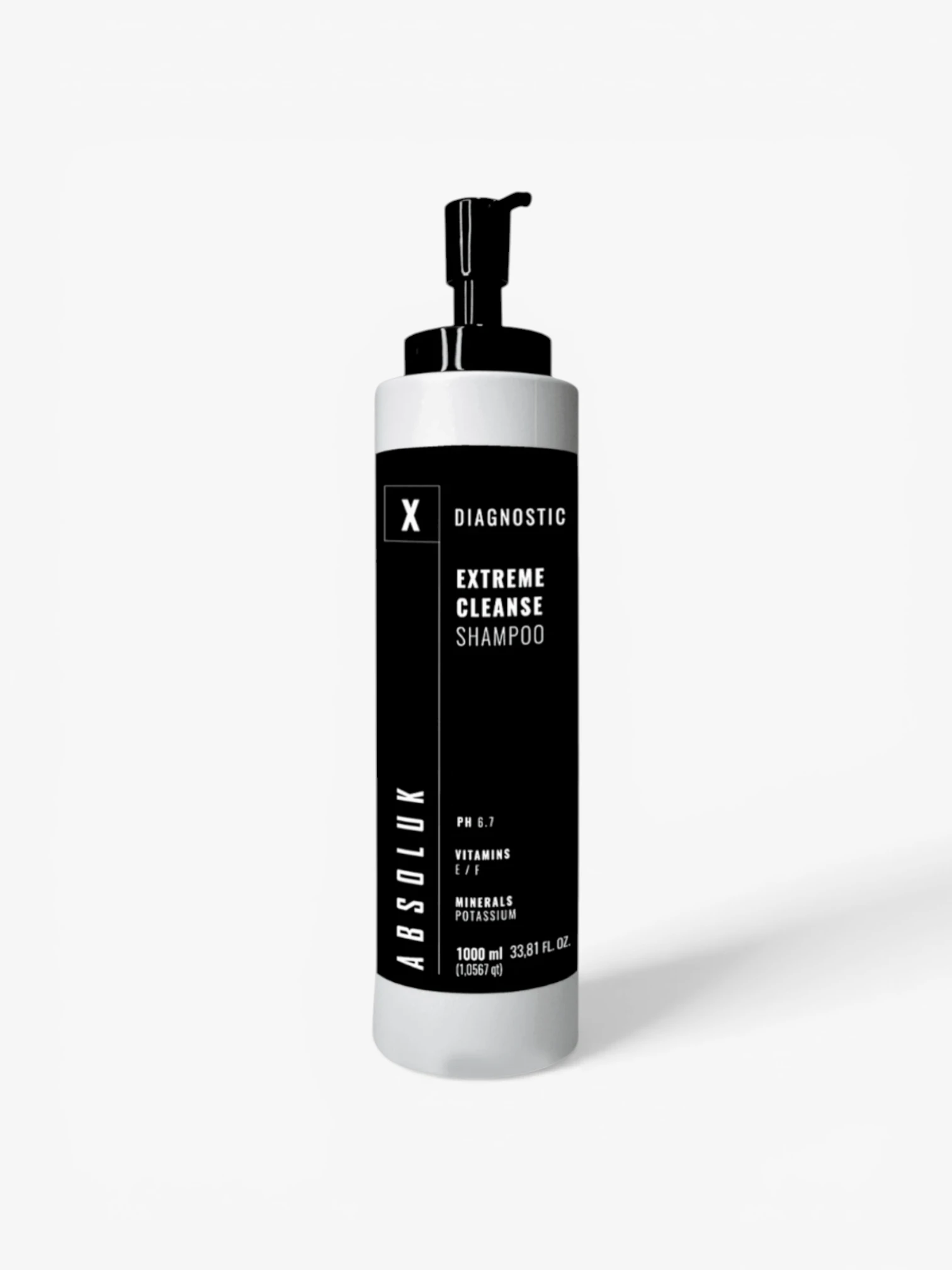 Absoluk Diagnostic Extreme Cleanse Shampoo is een professionele shampoo ontwikkeld voor gebruik in de salon. Dankzij de combinatie van vitamines, mineralen en een alkalische pH van 6,7 zorgt deze formule voor een intensieve en grondige reiniging van haar en hoofdhuid.