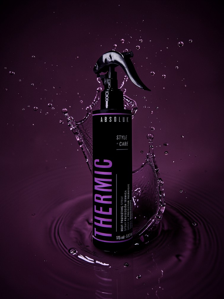 Absoluk Heat Protection Spray beschermt het haar effectief tegen schade door hitte van föhn, stijltang of krultang.