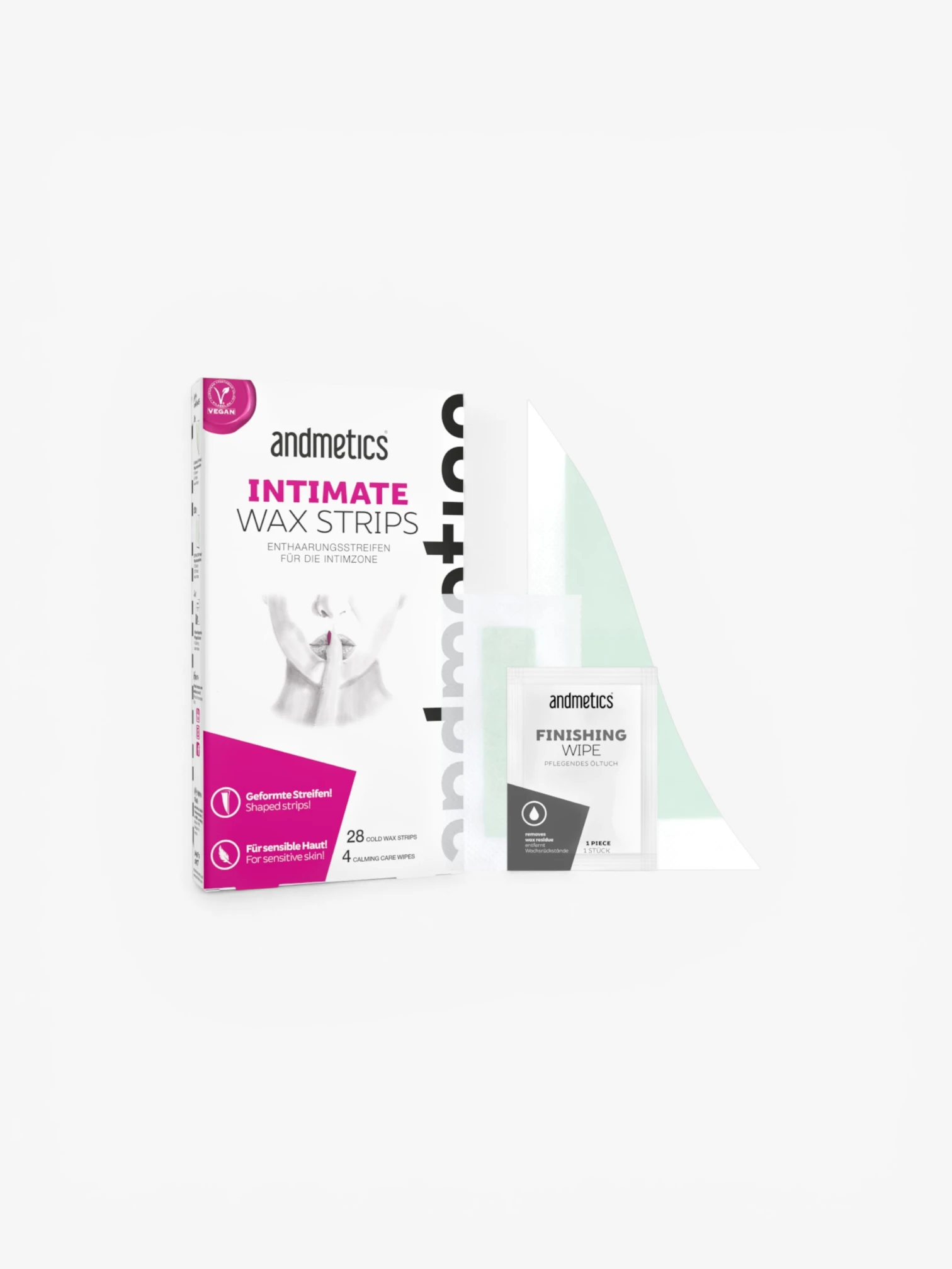 Andmetics Intimate Wax Strips zijn speciaal ontwikkeld voor een nauwkeurige en milde ontharing van de gevoelige intieme zones.