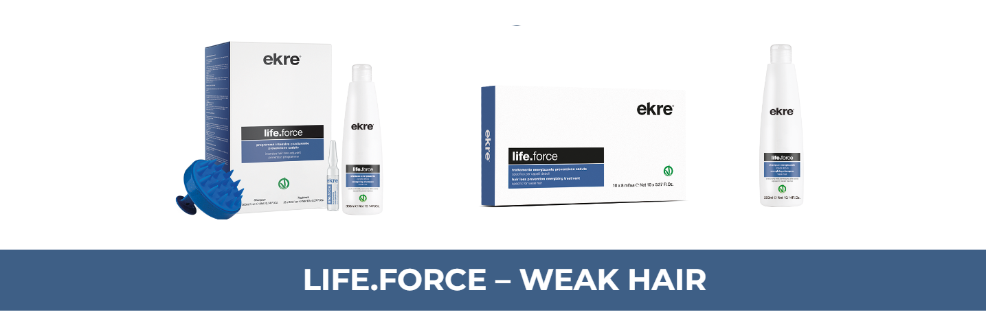 De Life.Force Kit revitaliseert het haar: gebaseerd op exclusieve formules, de synergetische werking tussen de shampoo, de stimulerende behandeling en de hoofdhuidmassage helpt haaruitval tegen te gaan en geeft body en hydratatie aan zwak en dun haar.