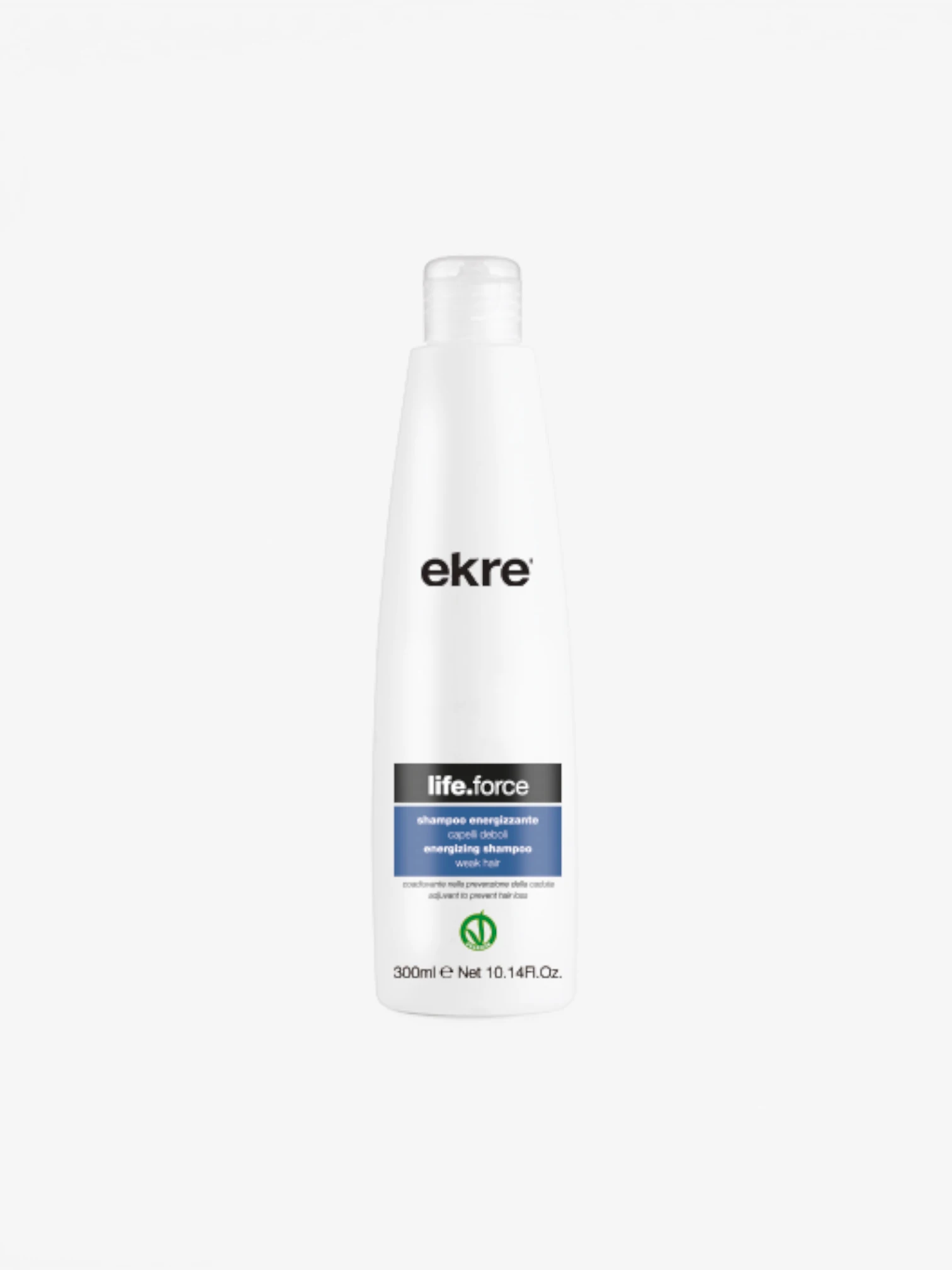 Ekre Life.Force Energizing Shampoo is een revitaliserende shampoo speciaal ontwikkeld voor zwak en kwetsbaar haar. Deze verzorgende formule helpt de hoofdhuid te stimuleren en ondersteunt de groei van sterker en gezonder haar. Het haar wordt op milde wijze gereinigd en voelt na gebruik soepel, fris en beschermd aan.