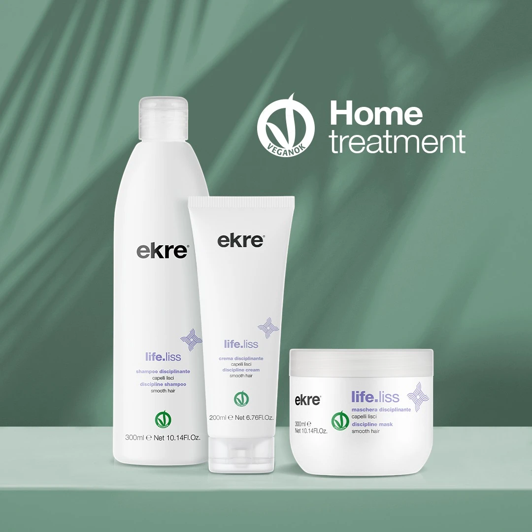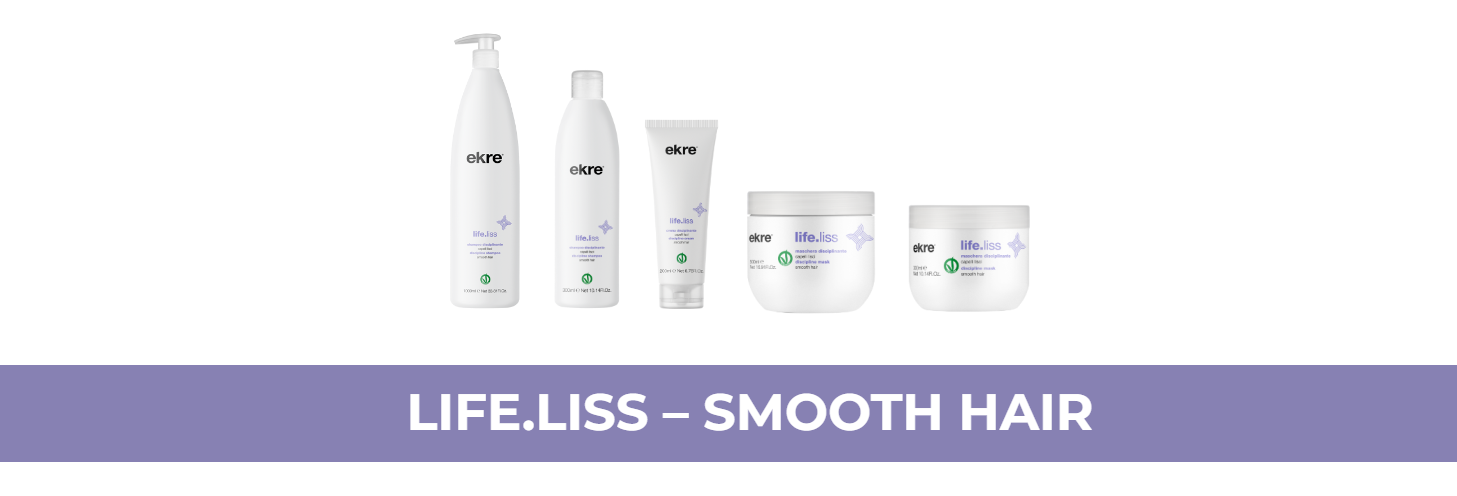 Life.Liss -crème voor steil haar is een belangrijk onderdeel van de Ekre-verzachtende behandeling: het werkt intensief conditionerend, werkt als een leave-in-conditioner, temt onhandelbaar haar en elimineert kroezen om perfect, steil haar te creëren.