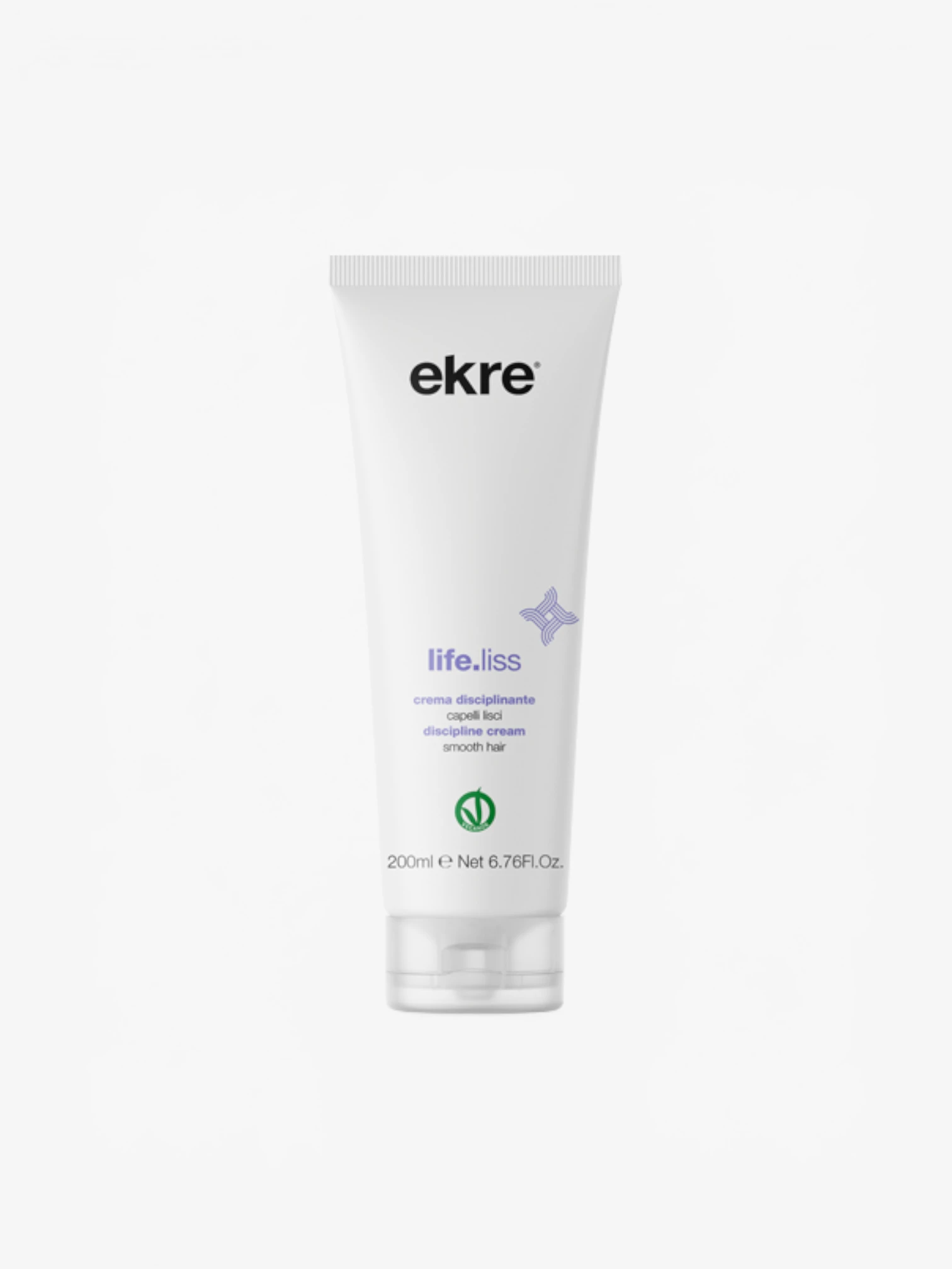 Ekre Life.Liss Disciplining Cream is speciaal ontwikkeld voor weerbarstig en pluizig haar dat behoefte heeft aan controle en gladheid. De formule is verrijkt met zwarte bessen extract en biedt een intensieve conditionerende werking. Werkt als leave in conditioner en hoeft niet uitgespoeld te worden. Verpakt in een handige flacon van 200 ml.