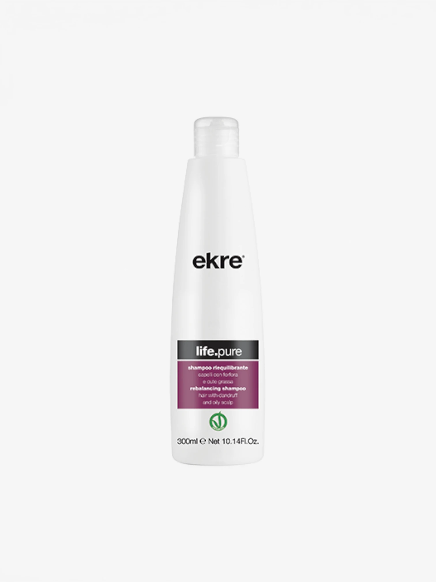 Life.Pure rebalancing shampoo is speciaal ontwikkeld voor vettig haar met roos. Ekre-shampoo richt zich op het haar en de hoofdhuid zonder irritatie te veroorzaken, reinigt zachtjes om overtollig talg te verwijderen en verfrist en versterkt het haar.