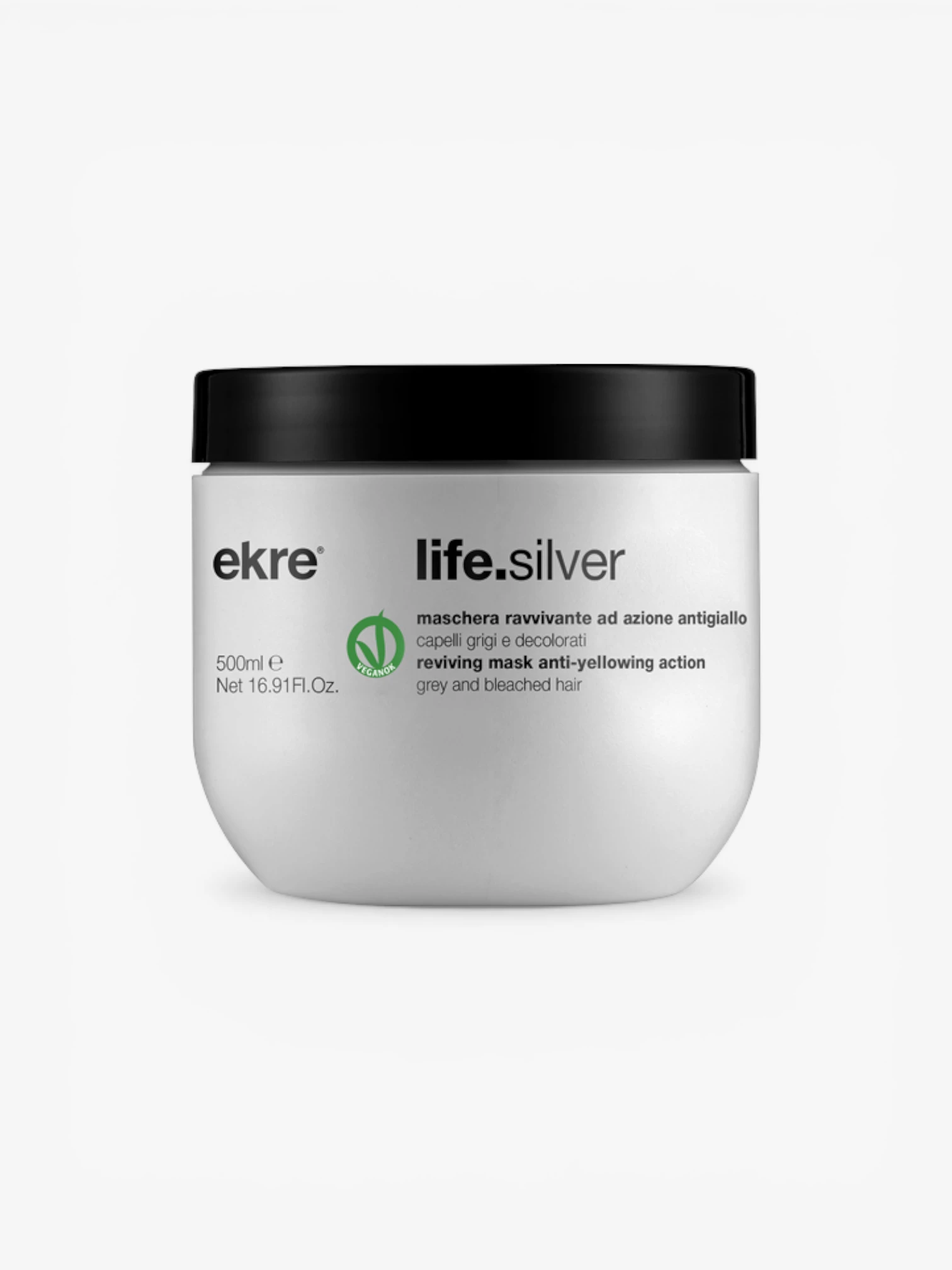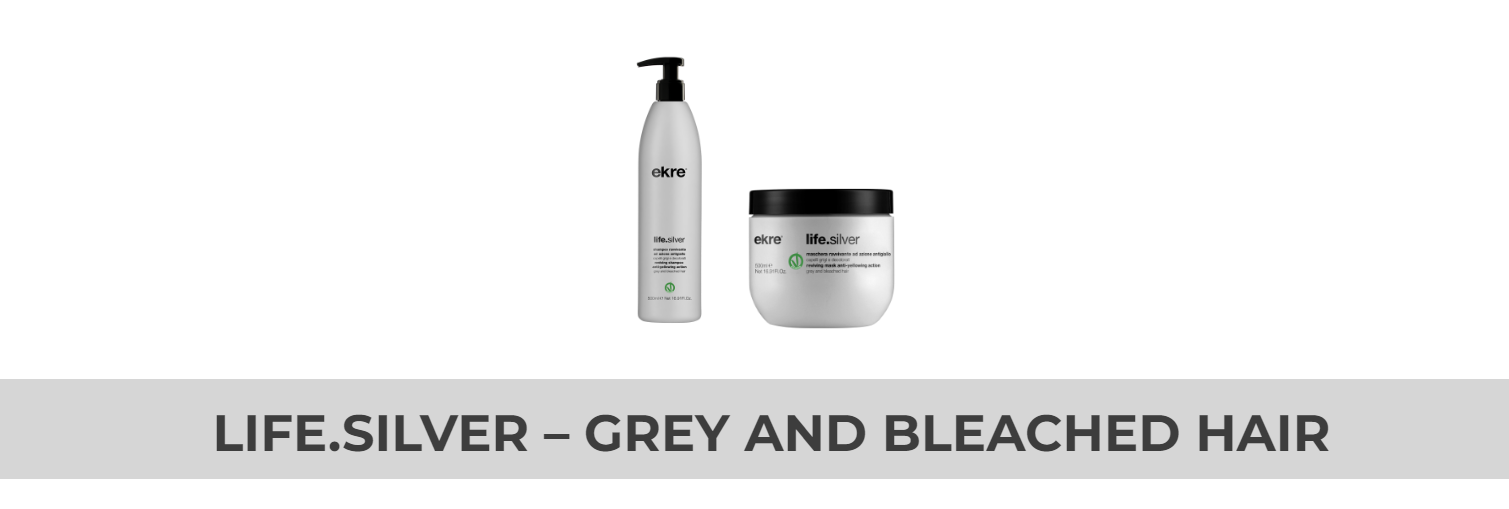 Ekre Life.Silver Reviving Mask is een intensief verzorgend masker dat speciaal is ontwikkeld om gele tinten in wit, grijs en geblondeerd haar te neutraliseren. Het masker helpt de haarkleur te verfrissen en geeft het haar een heldere, koele en glanzende uitstraling.