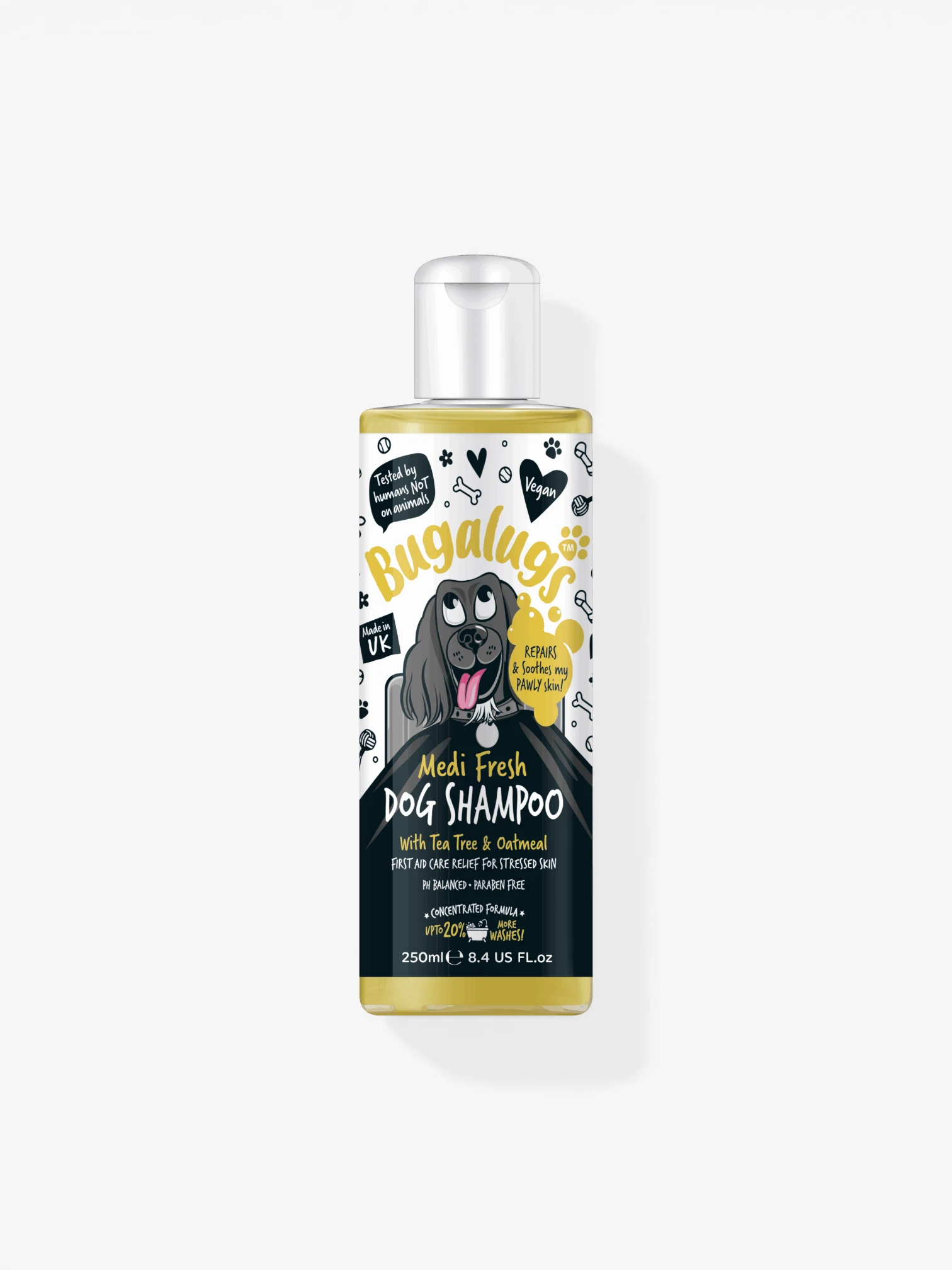 Bugalugs Medi Fresh Dog Shampoo is een verzorgende shampoo speciaal ontwikkeld voor honden met een jeukende, gevoelige of geïrriteerde huid. Deze formule biedt directe verlichting en helpt de huid te kalmeren en te herstellen.