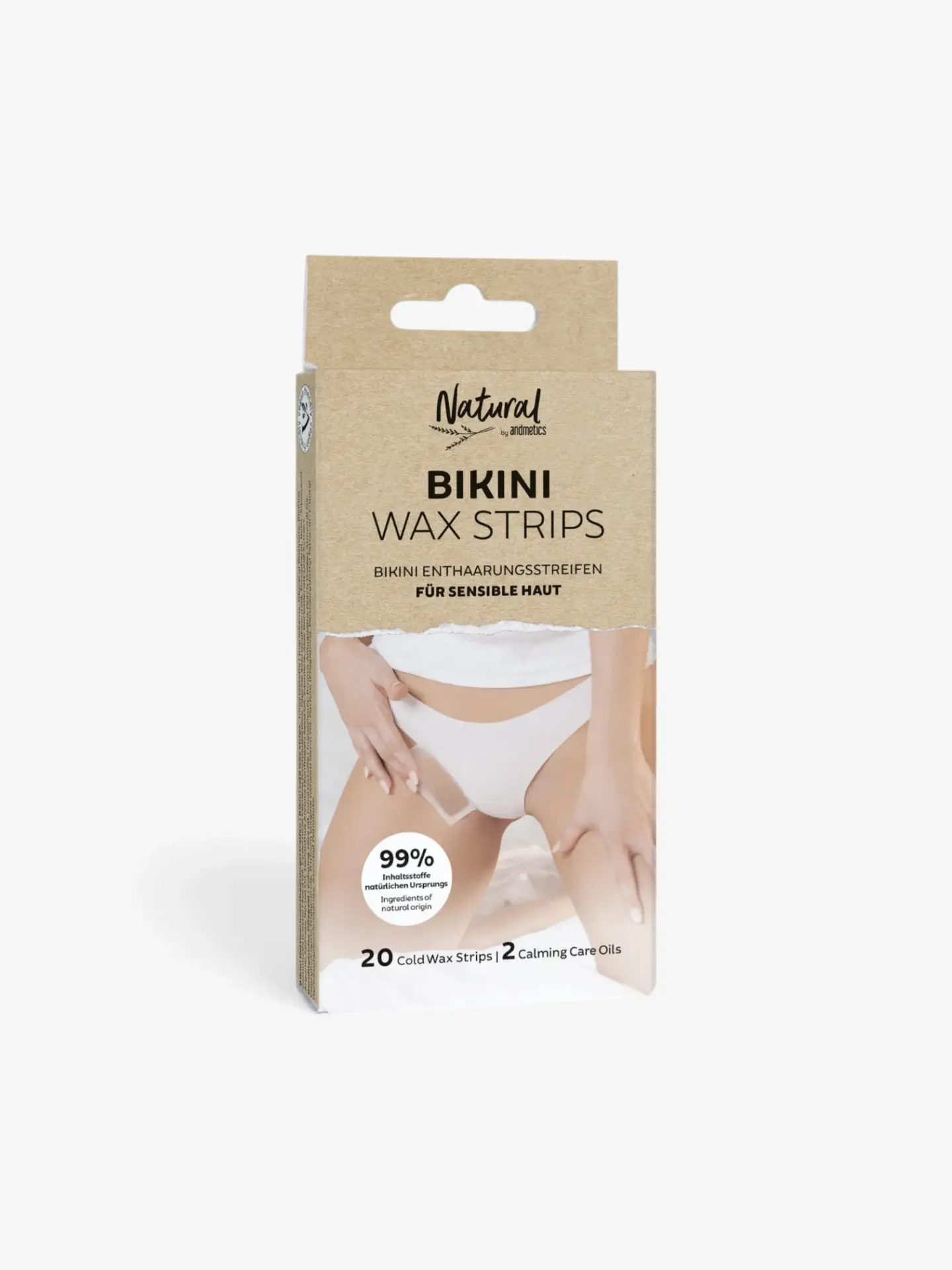 Andmetics NATURAL Bikini Wax Strips zijn gebruiksklare ontharingsstrips met 99% natuurlijke ingrediënten, speciaal ontwikkeld voor een milde en nauwkeurige ontharing van de gevoelige bikinizone.