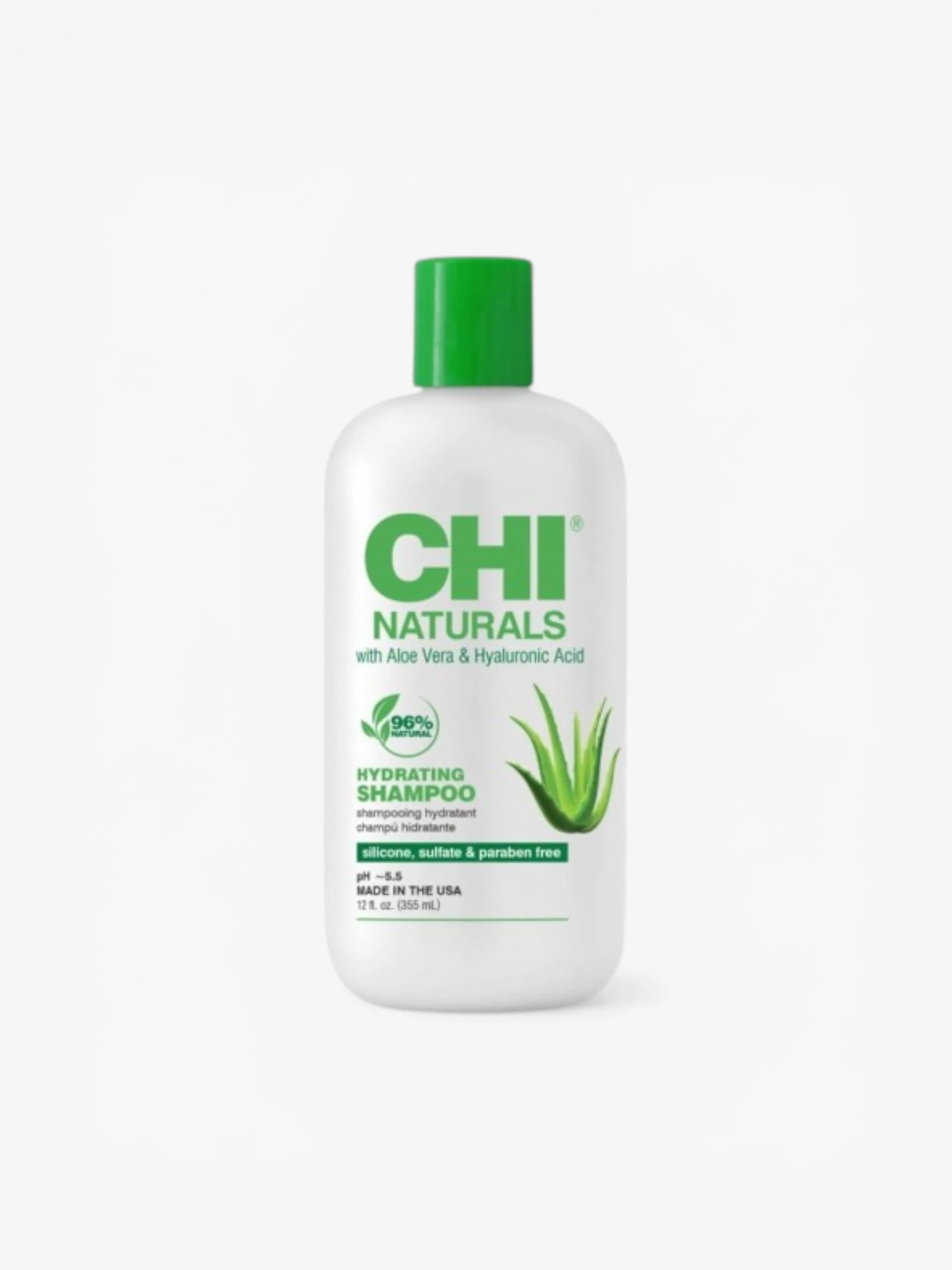 De CHI Naturals Hydrating Shampoo reinigt het haar op milde wijze en helpt tegelijkertijd de vochtbalans te herstellen. Verrijkt met Aloë Vera en Hyaluronzuur hydrateert deze shampoo intensief, terwijl het haar zacht, glanzend en gezond aanvoelt.