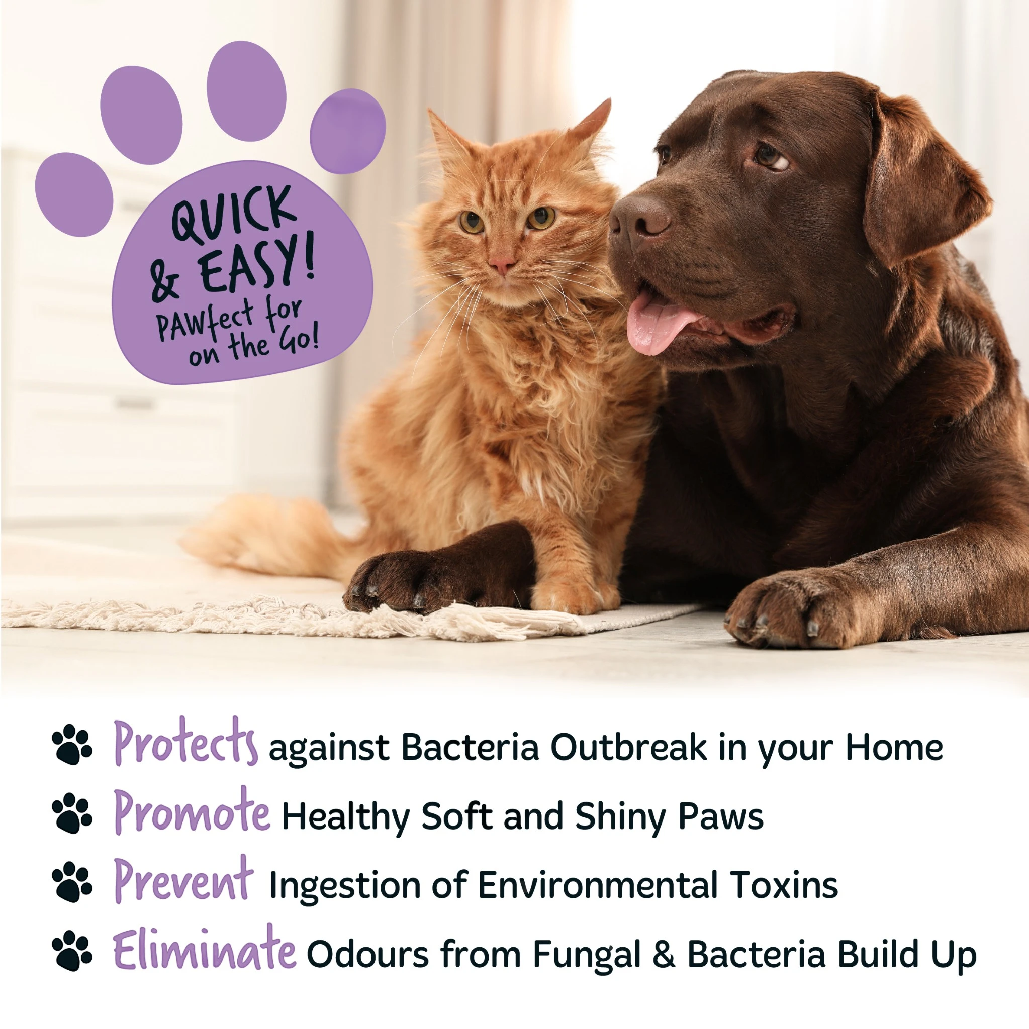 De milde formule met lavendel en kamille reinigt niet alleen effectief, maar helpt ook de huid te kalmeren en verzorgen. Hierdoor blijven de poten van je huisdier schoon, fris en comfortabel.