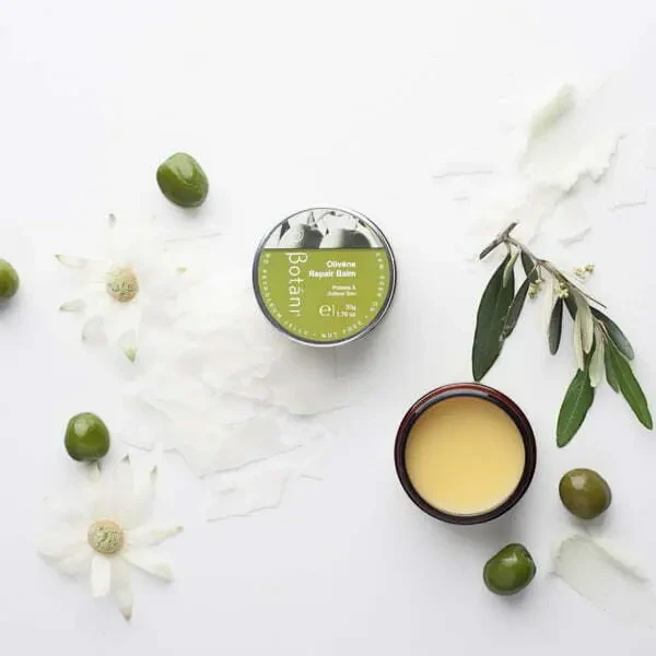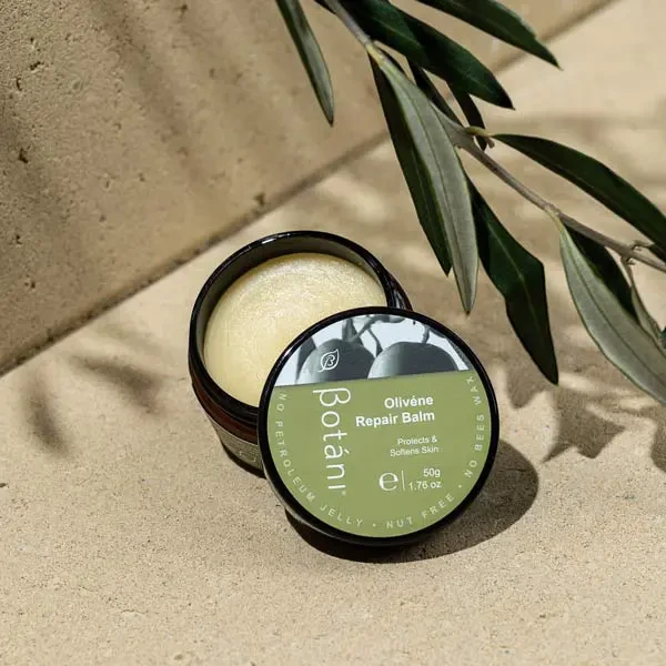 Botani Olivene Repair Balm werkt met een rijke mix van plantaardige oliën zoals olijfolie, olijfboter en olijf squalaan. Deze ingrediënten voeden de huid diep en helpen het vocht vast te houden zonder de huid af te sluiten.