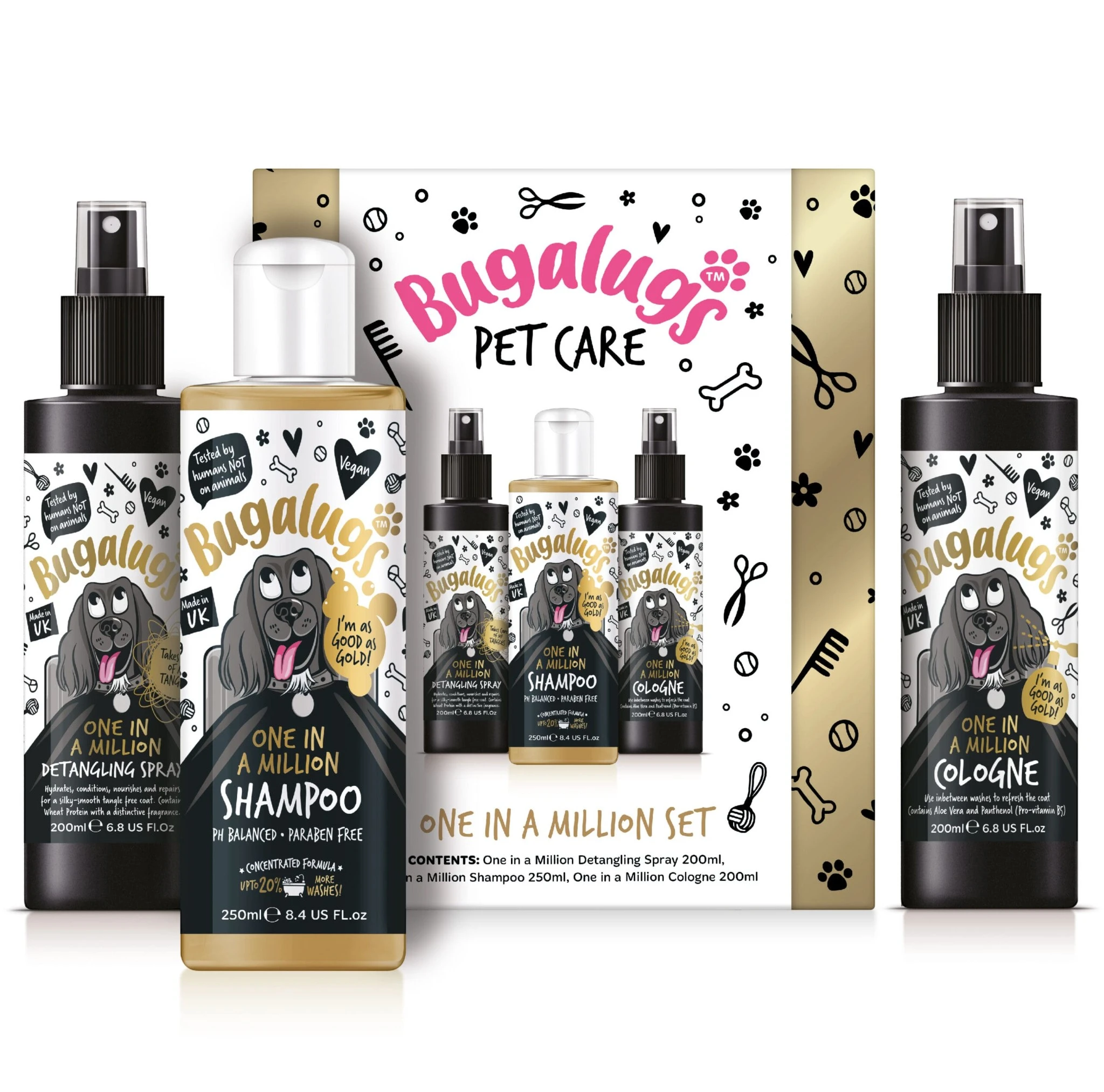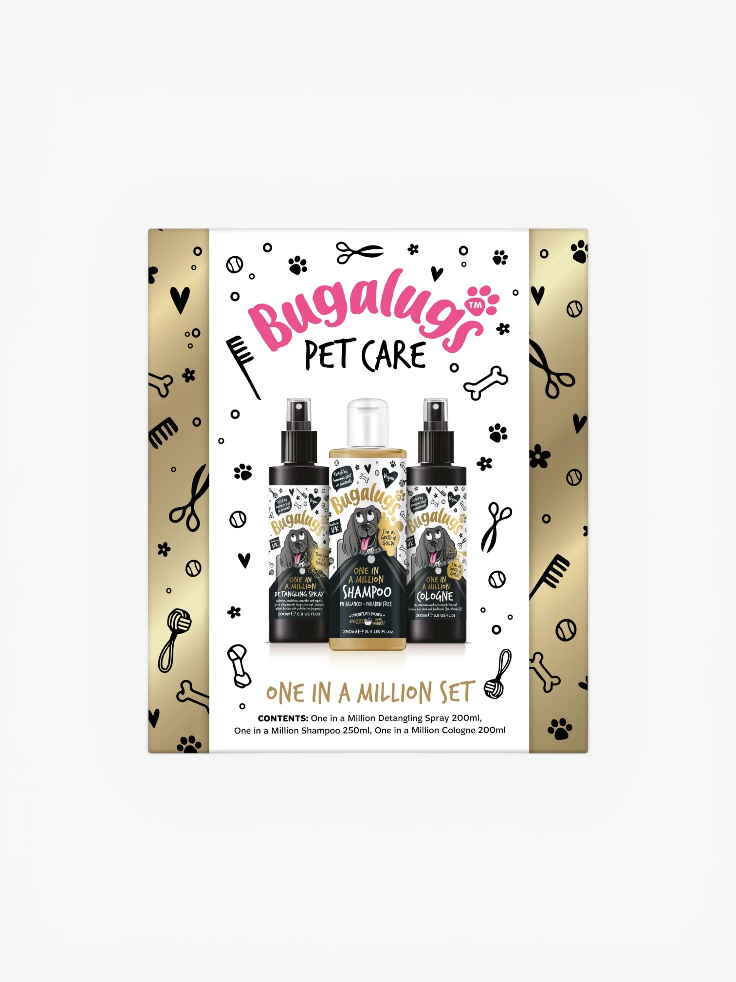 Bugalugs One in a Million Gift Set 3 Pack is een luxe verzorgingsset voor honden die alleen het beste verdienen. Deze set bevat drie perfect op elkaar afgestemde producten voor een complete verzorgingsroutine met een exclusieve geur.