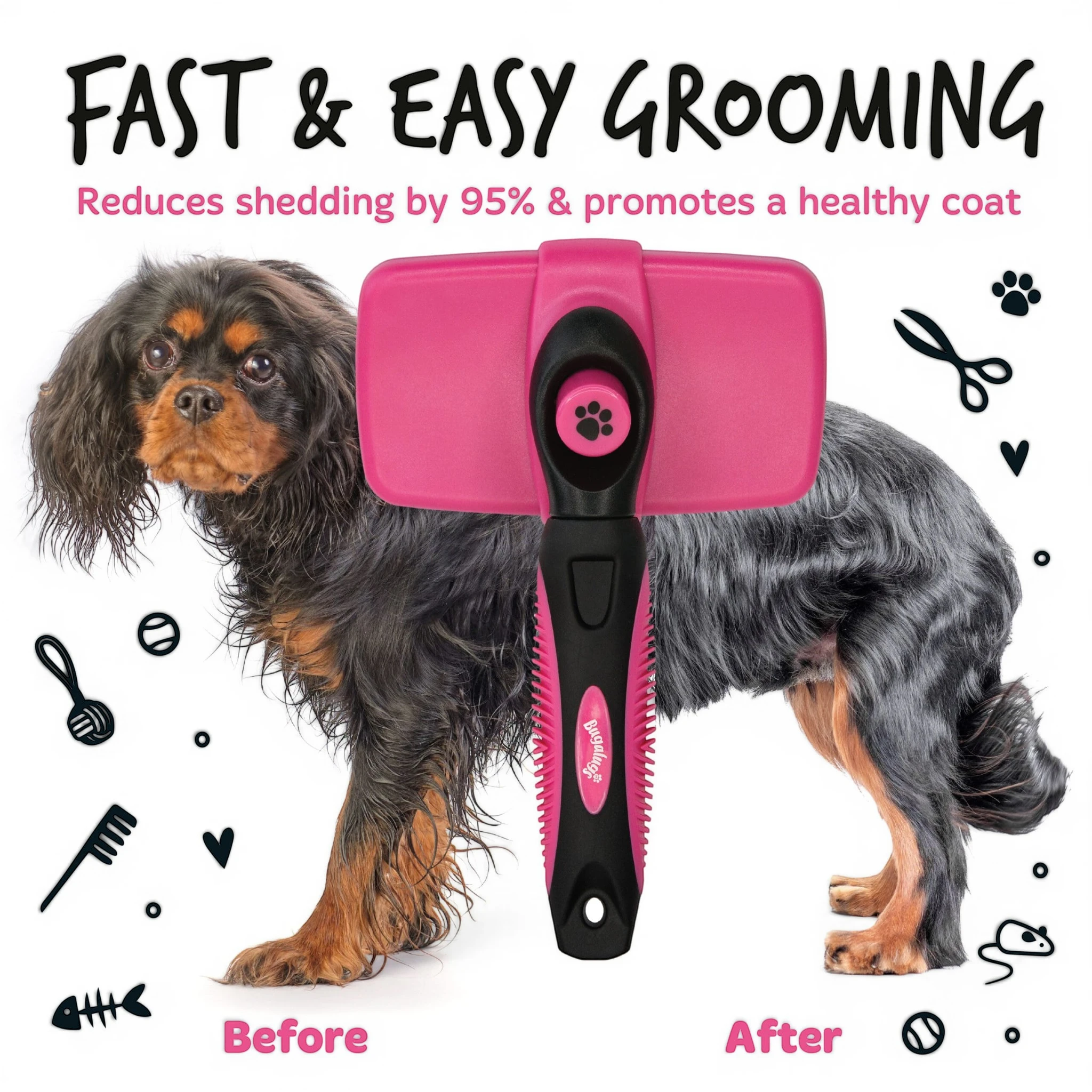 Bugalugs 2 in 1 Grooming Brush is een vlotte operator! Met een dubbelzijdig ontwerp pakt het snel een breed scala aan vachten aan, wat zorgt voor een probleemloze verzorgingservaring.