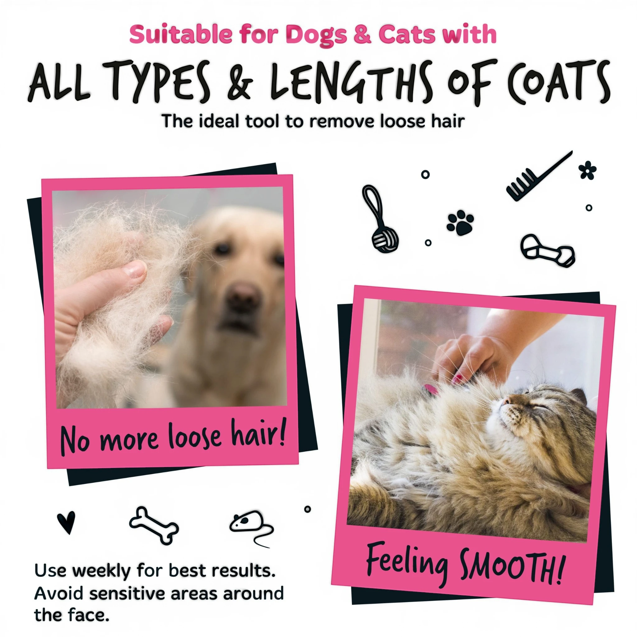 Geschikt voor zowel langharige als kortharige dieren zoals honden, katten, puppy’s en kittens. Met deze borstel ziet je huisdier er altijd verzorgd en op zijn best uit.