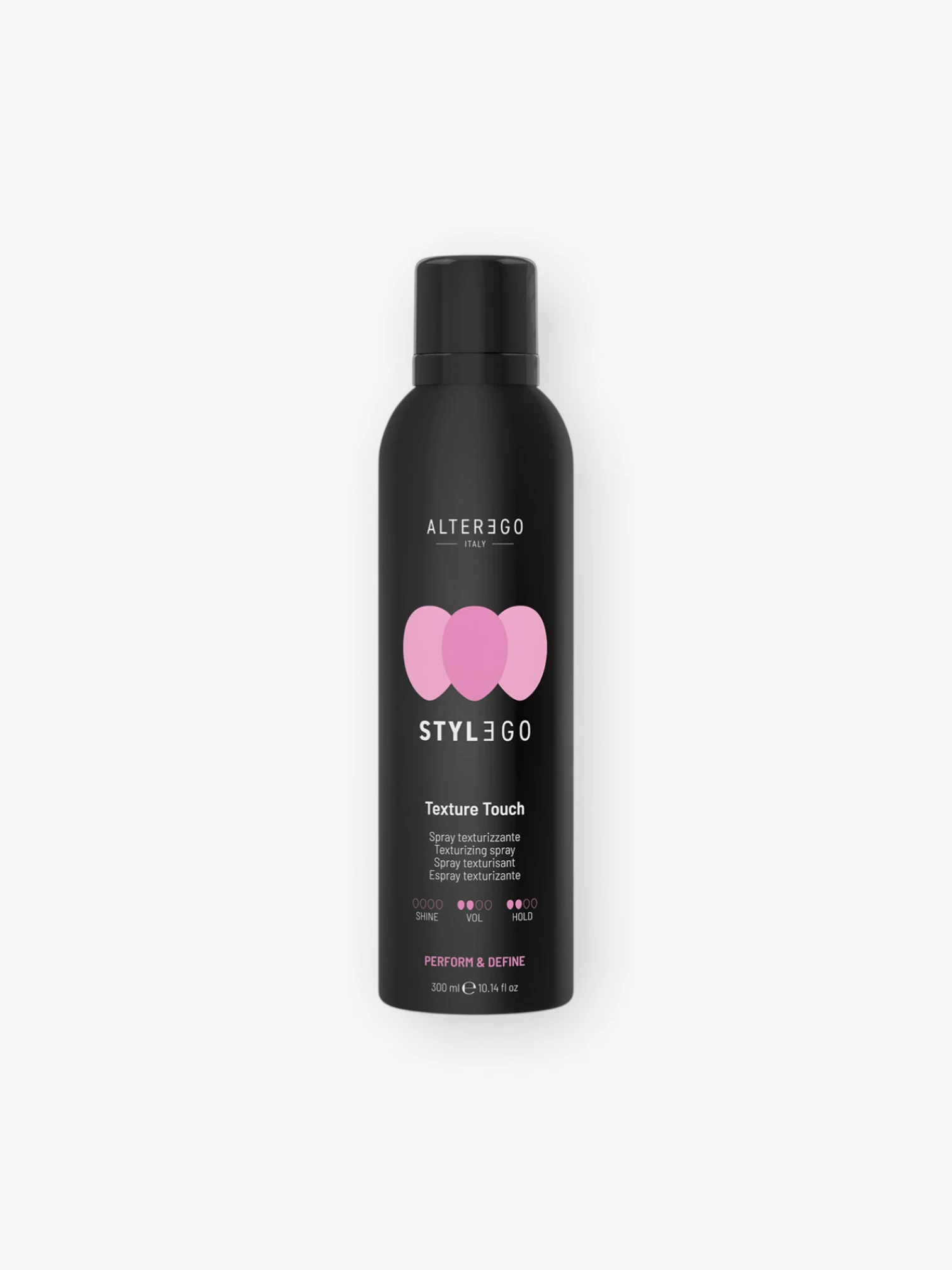 Alter Ego Stylego Texture Touch is een texturizing spray met medium hold die gebruikt kan worden vóór of na het stylen, op zowel nat als droog haar. De formule geeft volume, body en textuur zonder het haar hard of stug te maken.