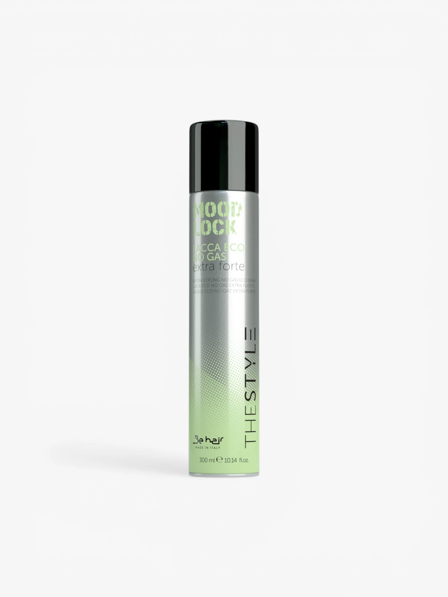 Be Hair The Style Mood Lock Eco Lacquer Extra Strong vormt een sterke fixerende laag rondom het haar, waardoor het kapsel langdurig in model blijft.