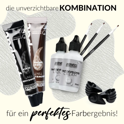 De perfecte mix! De ideale mix voor wenkbrauw- en wimperkleuren. De andmetics professional Tint Developer is nodig om het effect van de andmetics professional Brow & Lash Tints te activeren.